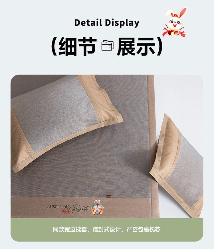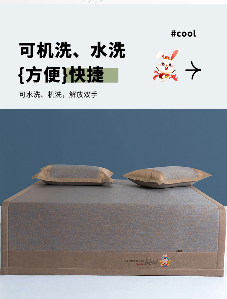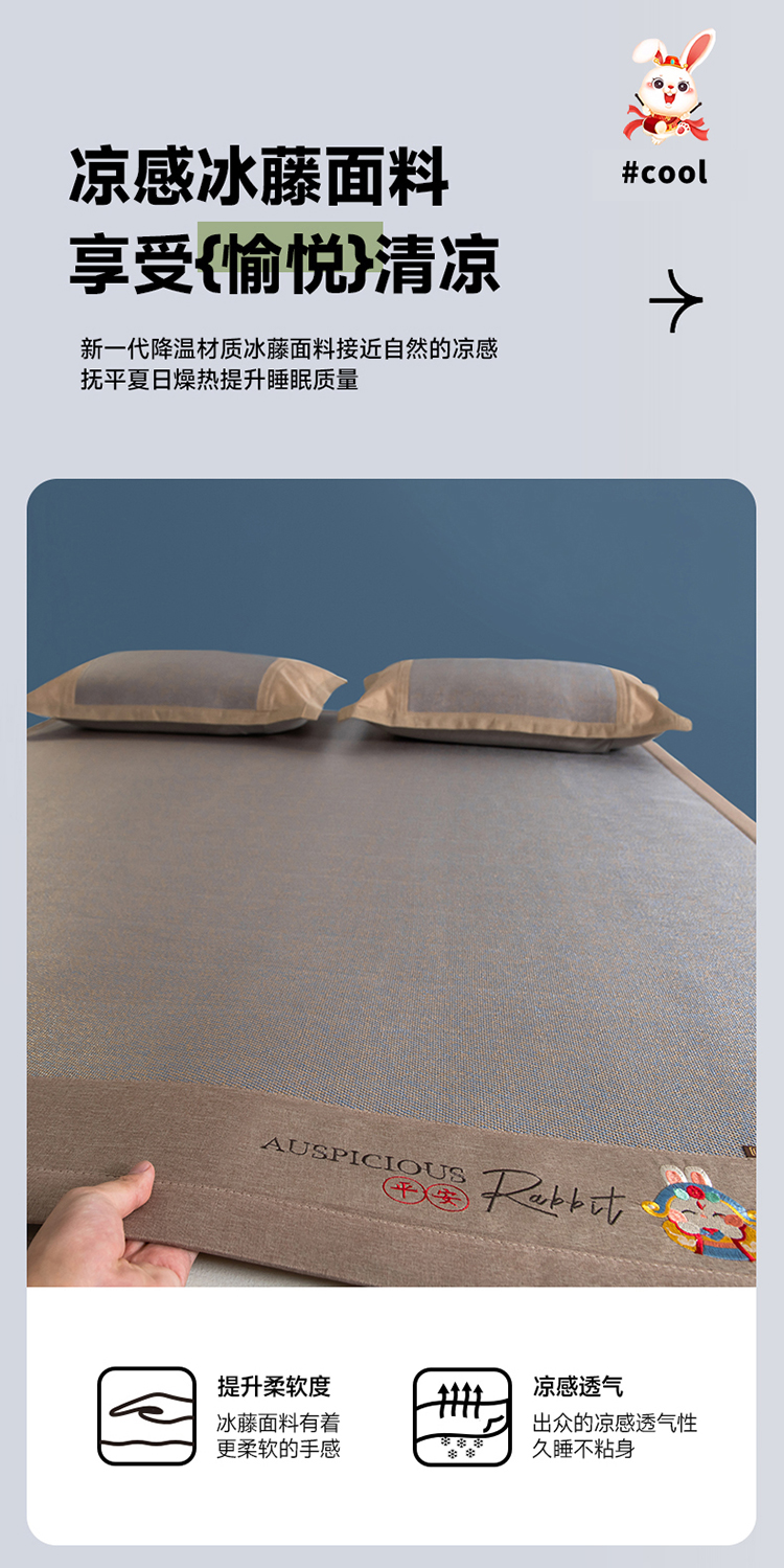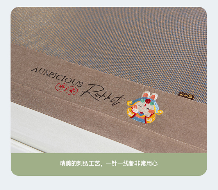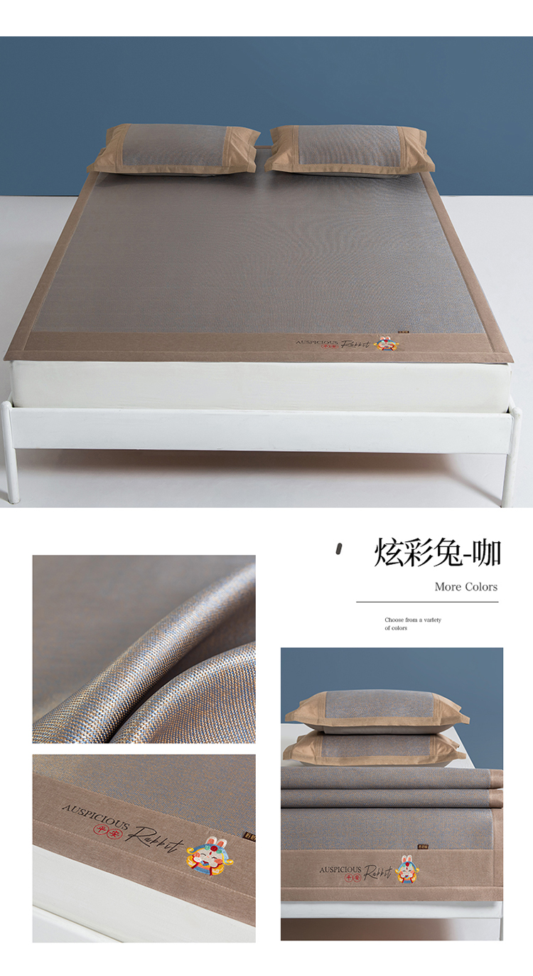 商品名称:全季 2023新款全季家居中国风贴布绣冰藤席 炫彩兔-咖