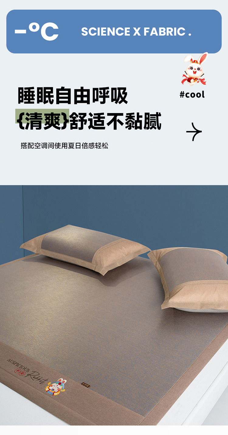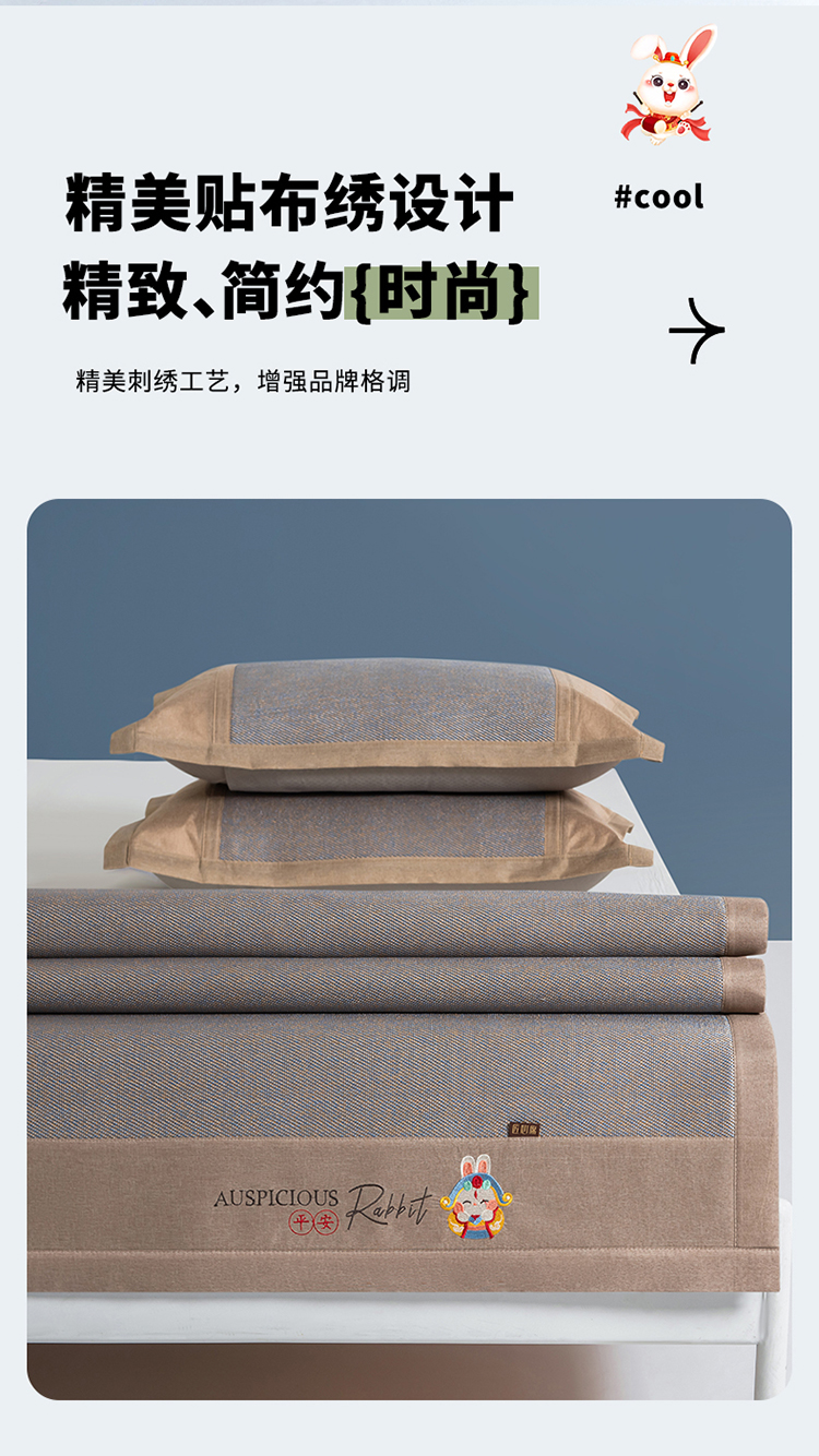 全季 2023新款全季家居中国风贴布绣冰藤席 炫彩兔-咖