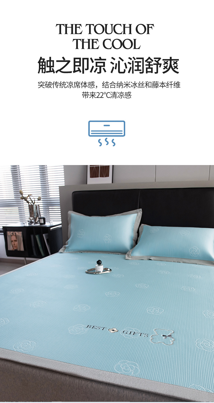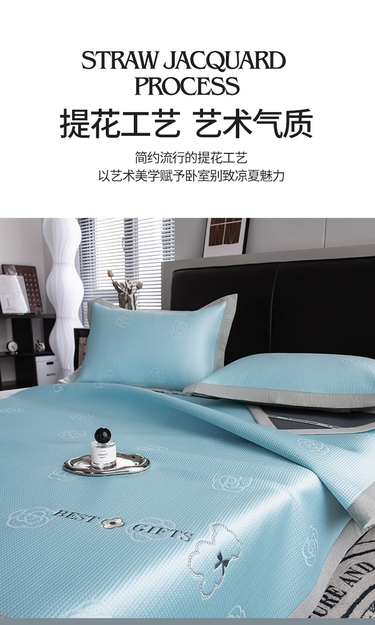 (总)全季家居 2023新款A类轻奢抗菌冰藤席,和意款-孔雀蓝,和意款-星际灰,和意款-薄荷绿,字母款-孔雀蓝,字母款-薄荷绿,字母款-星际灰