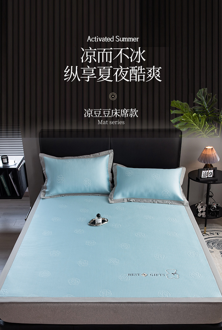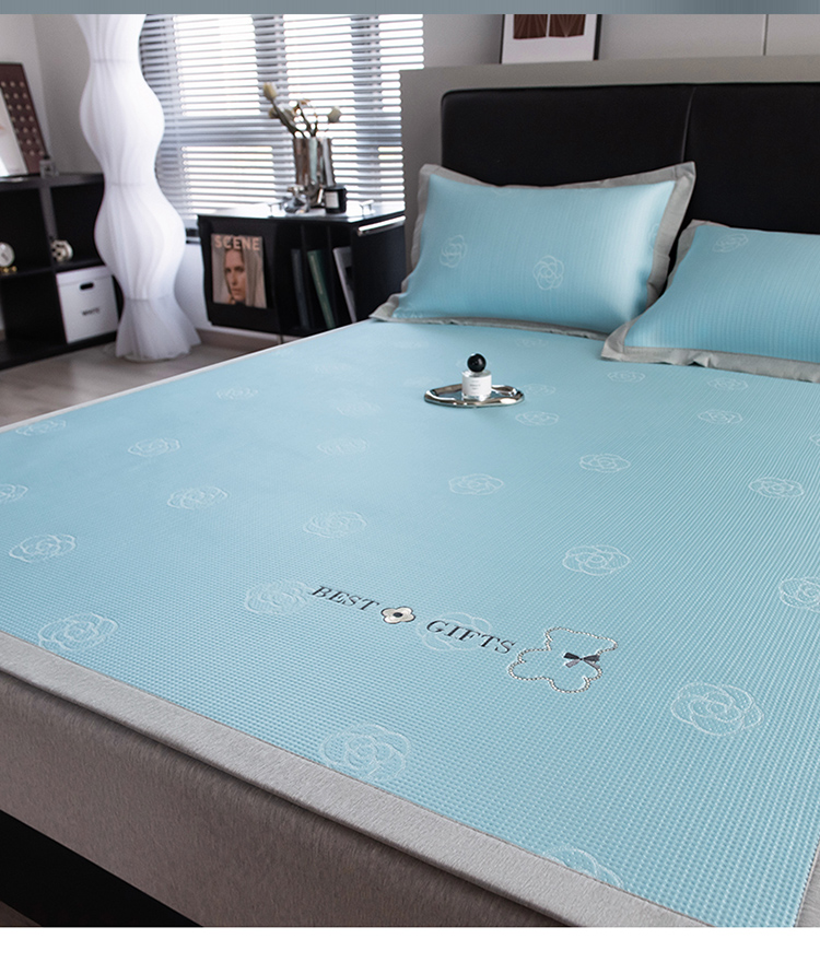(总)全季家居 2023新款纯色凉感丝刺绣凉席,天蓝,灰色,粉色,绿色,草绿