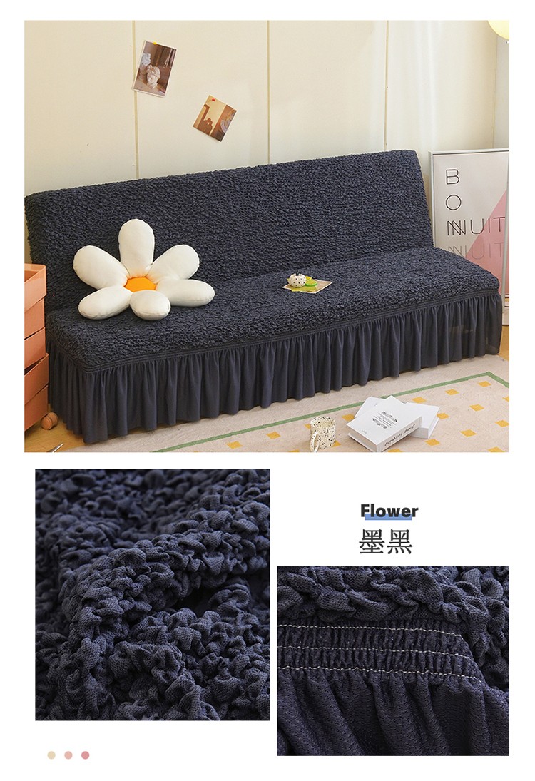 商品名称:启博家纺 2023新款高端日式皱皱布奶油云纱裙边沙发床套 墨黑