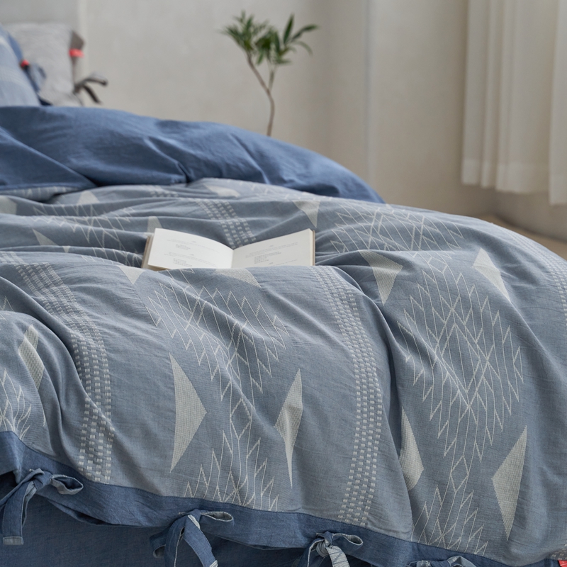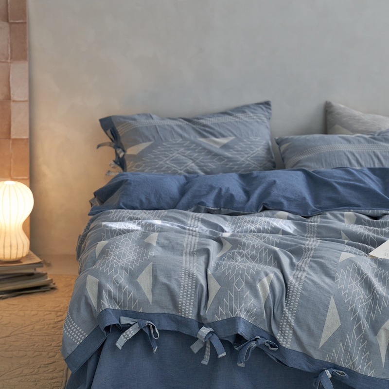 商品名称:安莱生活2023新品四季款棉刺子大提花波西米亚风名族异域风高端四件套 波西米亚-深蓝