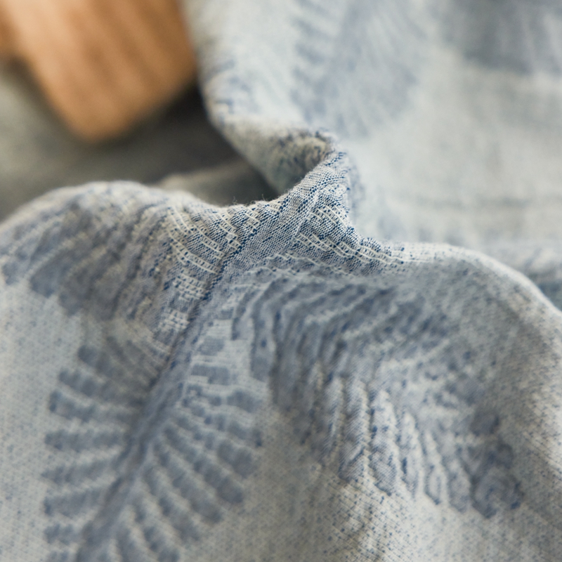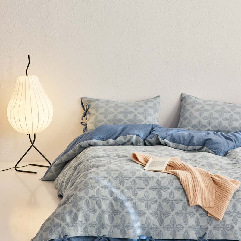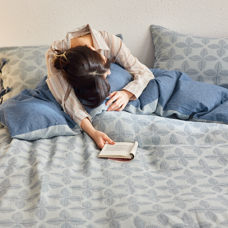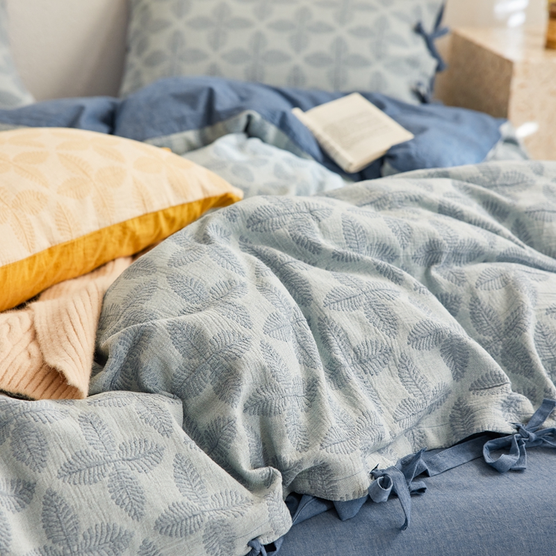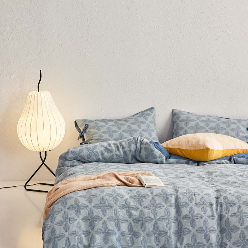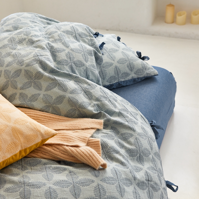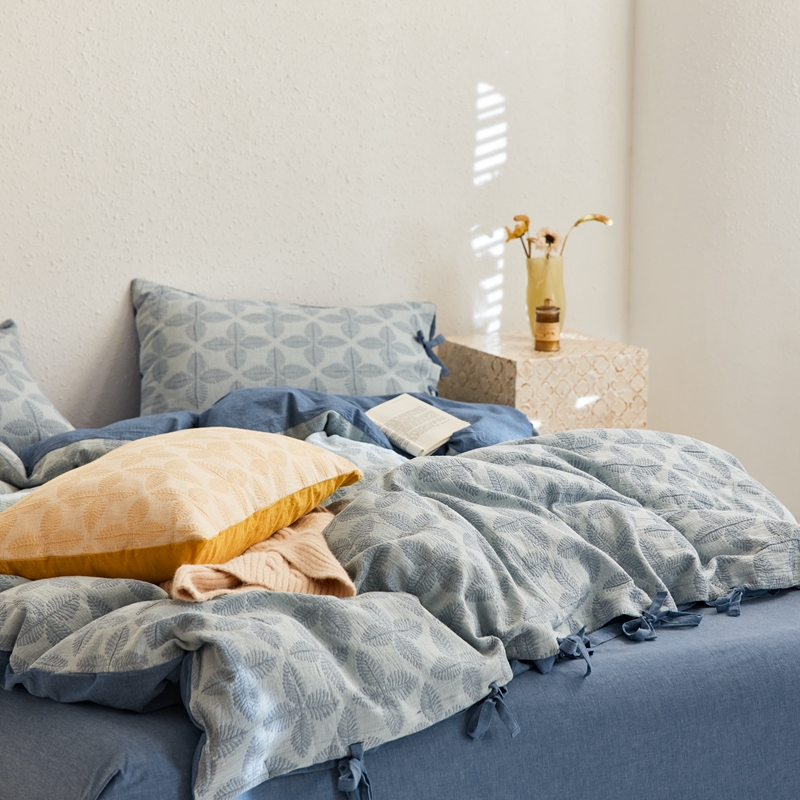 安莱生活 2023年新款高端双层纱栀子花色织大提花蝴蝶结工艺款四件套 幸运草-深蓝