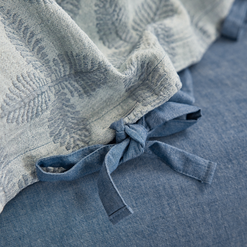 商品名称:安莱生活 2023年新款高端双层纱栀子花色织大提花蝴蝶结工艺款四件套 幸运草-深蓝