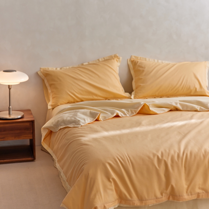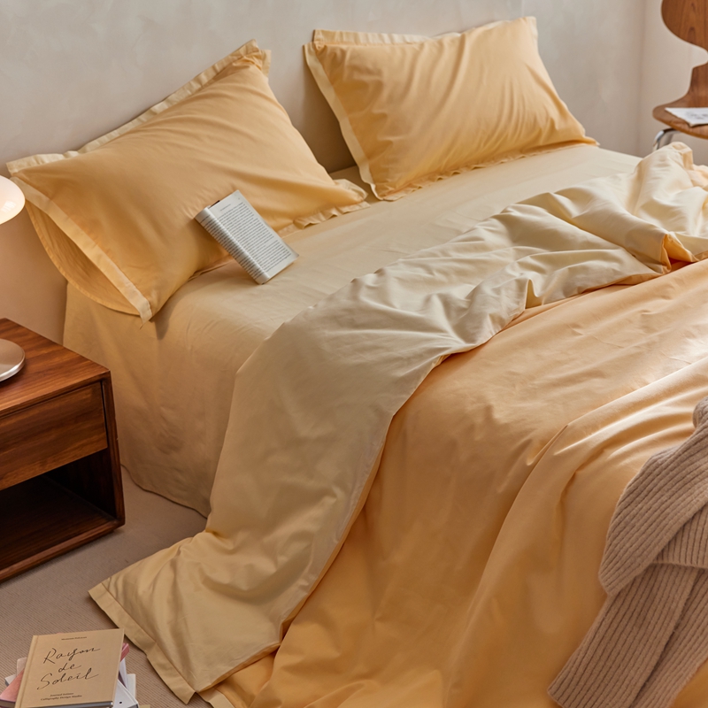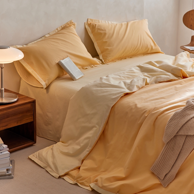 当前位置: 91家纺网 > 商品网购 > 床品套件 > 四件套 > 全棉普通四件套 > 安莱生活 2023新款60贡缎双拼小宽边四件套 奶杏双拼奶黄