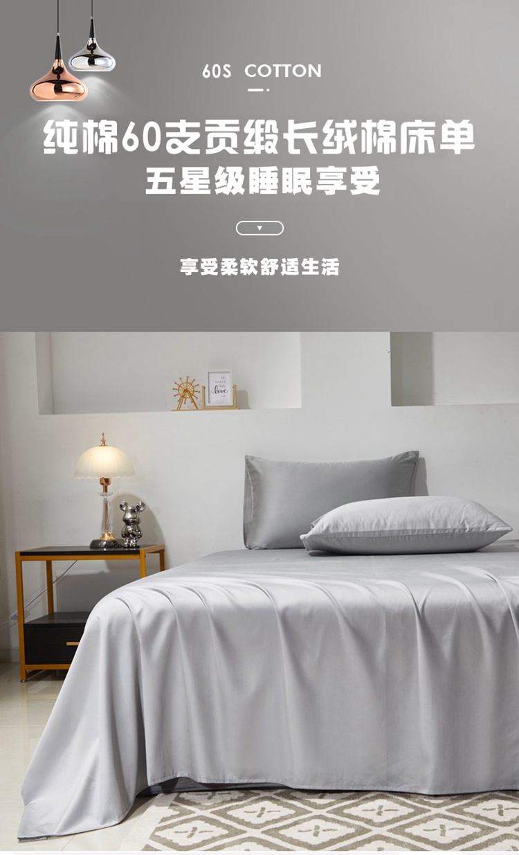 商品名称:(总)晶缦 2023新款全棉纯棉60支贡缎长绒棉纯色多规格单品床单