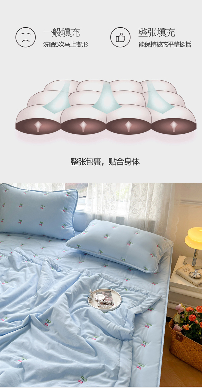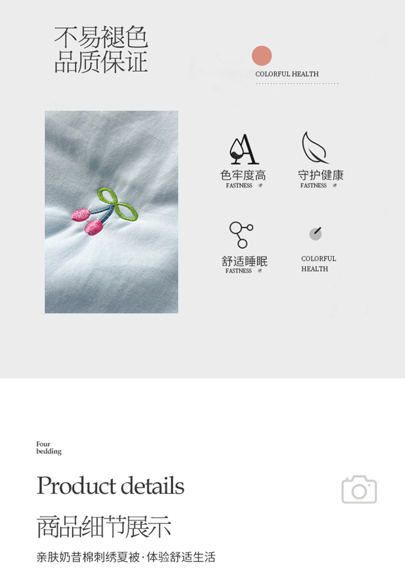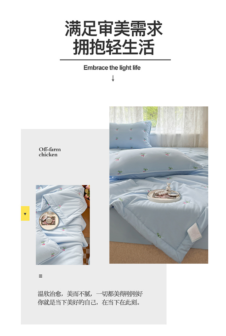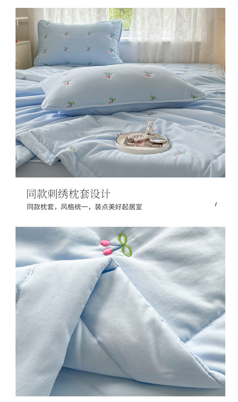 商品名称:尊康家纺(原磊科) 2024新款亲肤奶昔棉刺绣夏被 夏被-天蓝