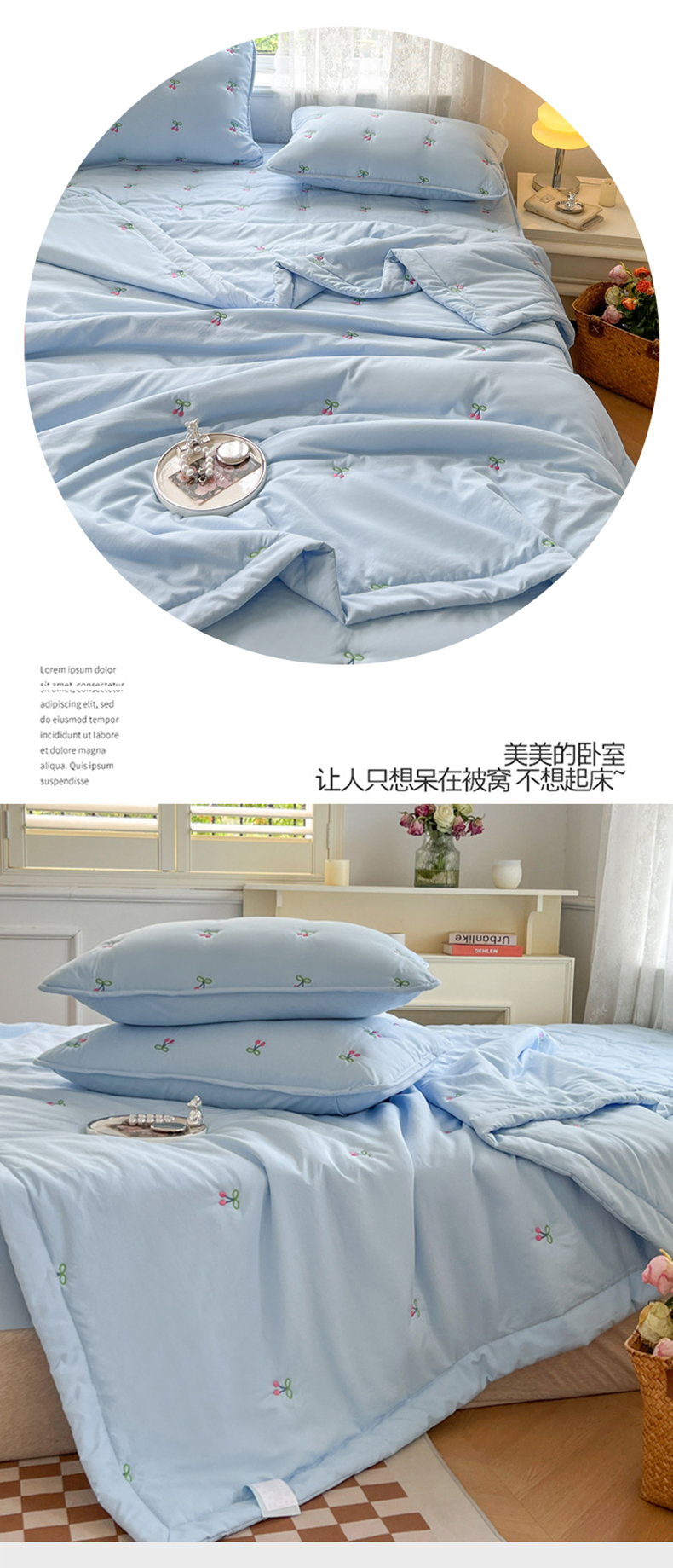 尊康家纺(原磊科) 2024新款亲肤奶昔棉刺绣夏被 夏被-天蓝