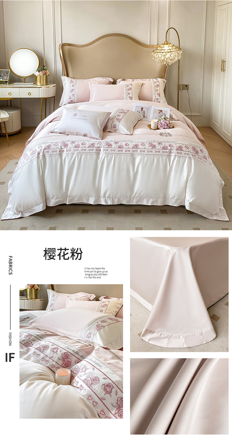 魅都100阿克苏长绒棉刺绣四件套--雅颜系列 雅颜-樱花粉
