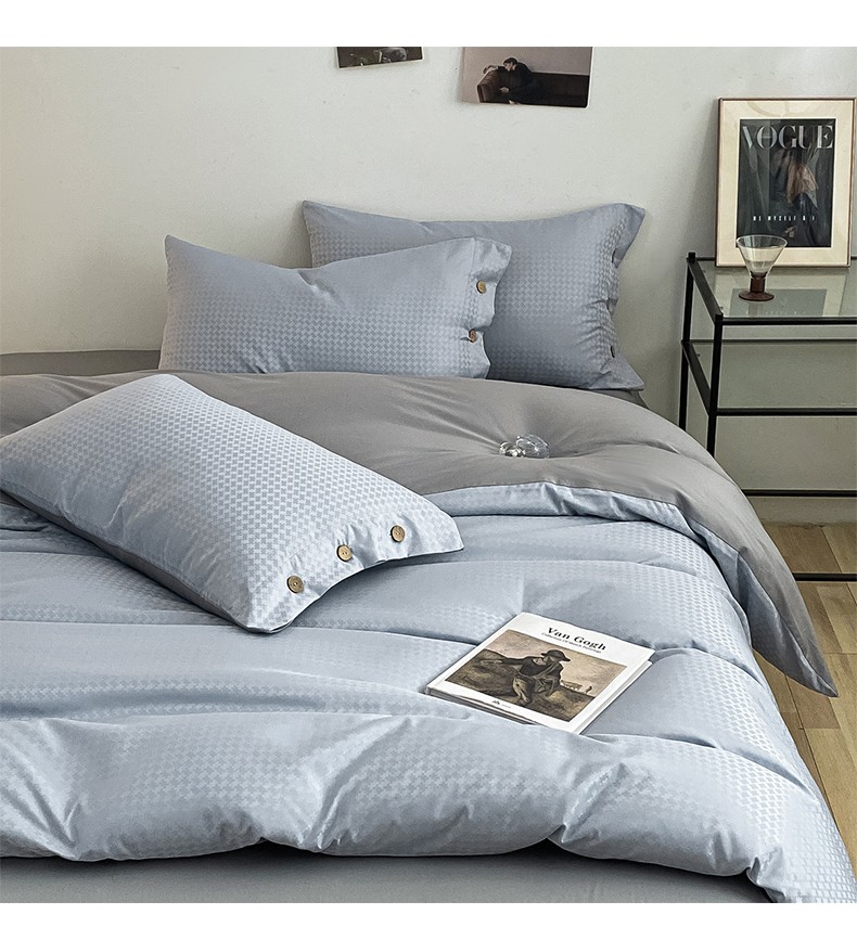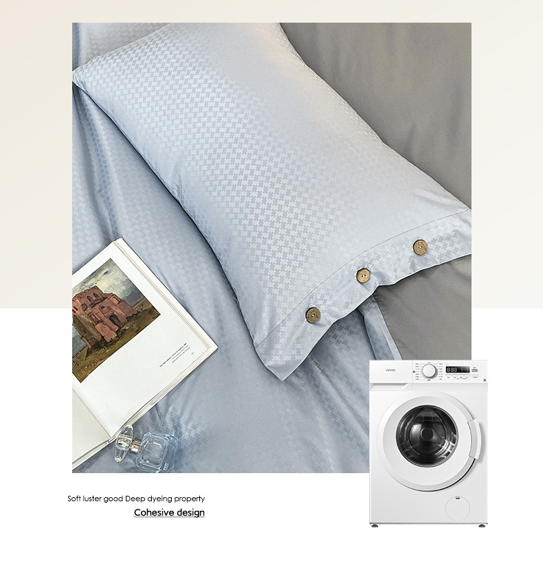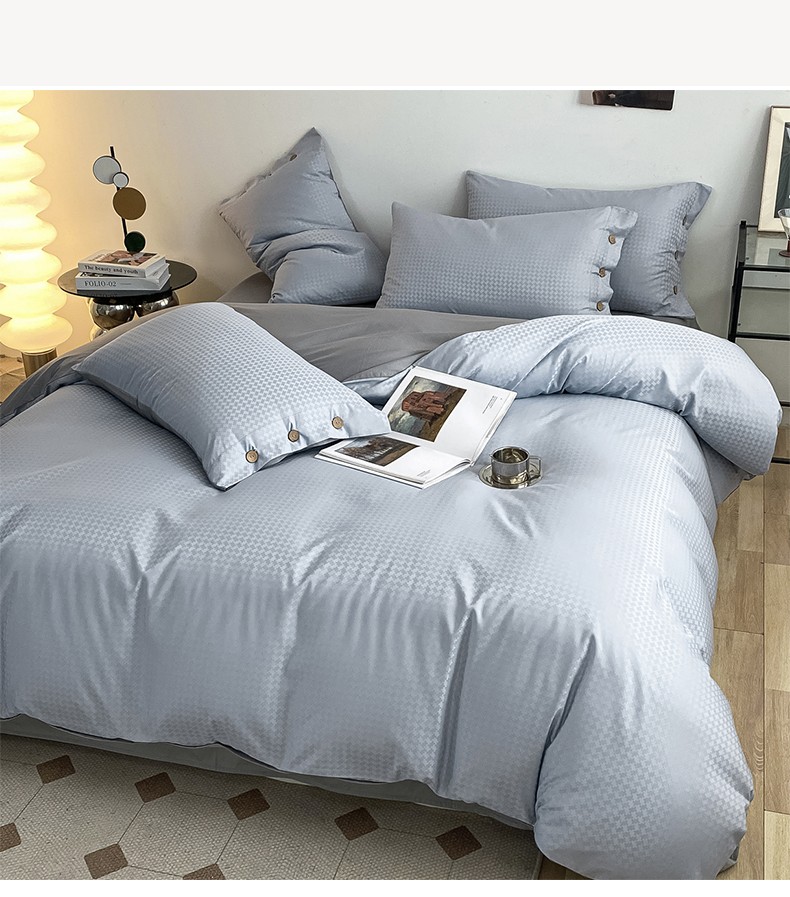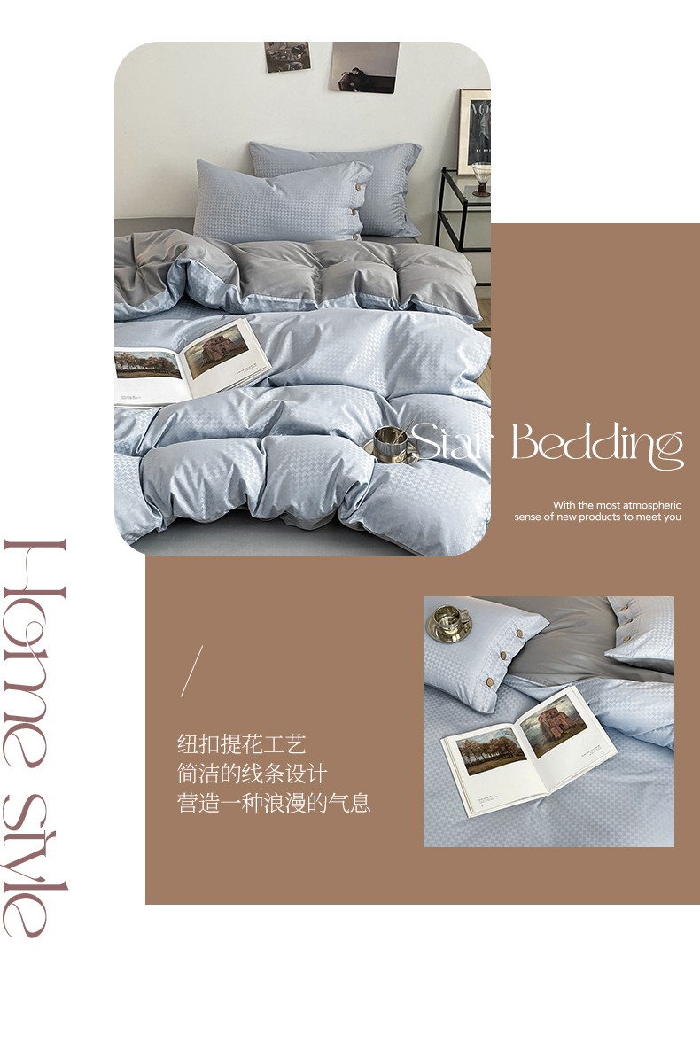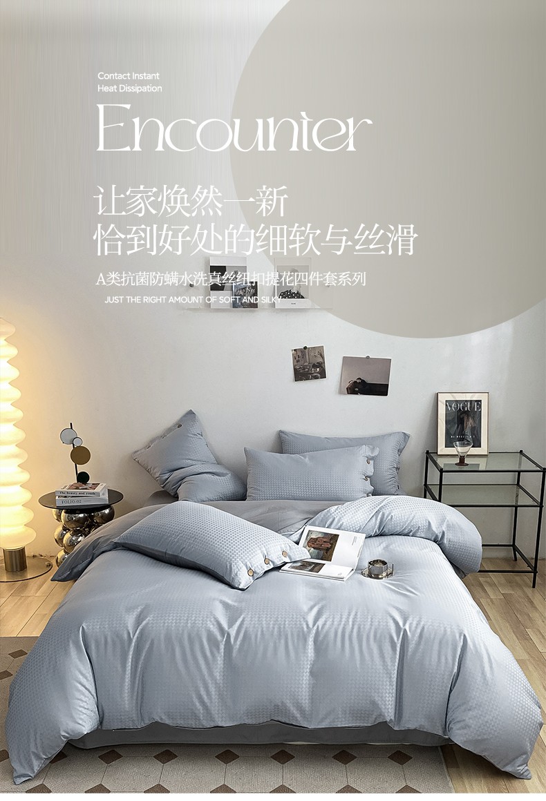 当前位置: 91家纺网 > 商品网购 > 床品套件 > 四件套 > 提花四件套 > 古吉梦 2023新款A类抗菌防螨水洗真丝纽扣提花四件套 纽扣提花-海青+浅灰
