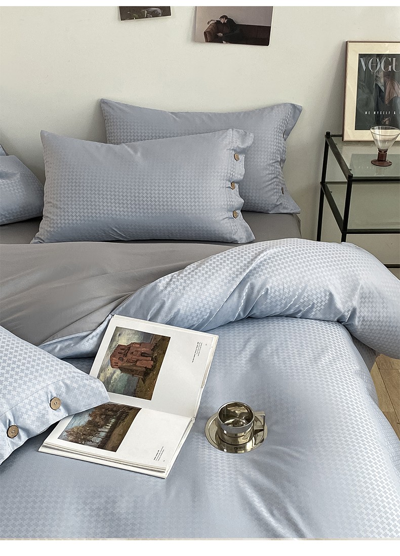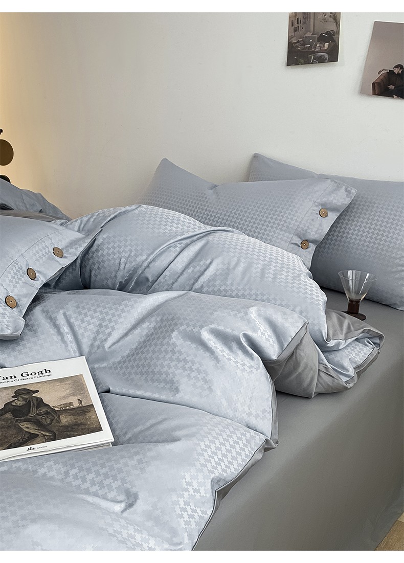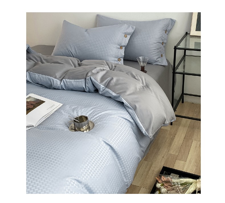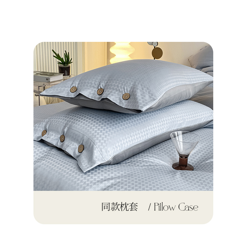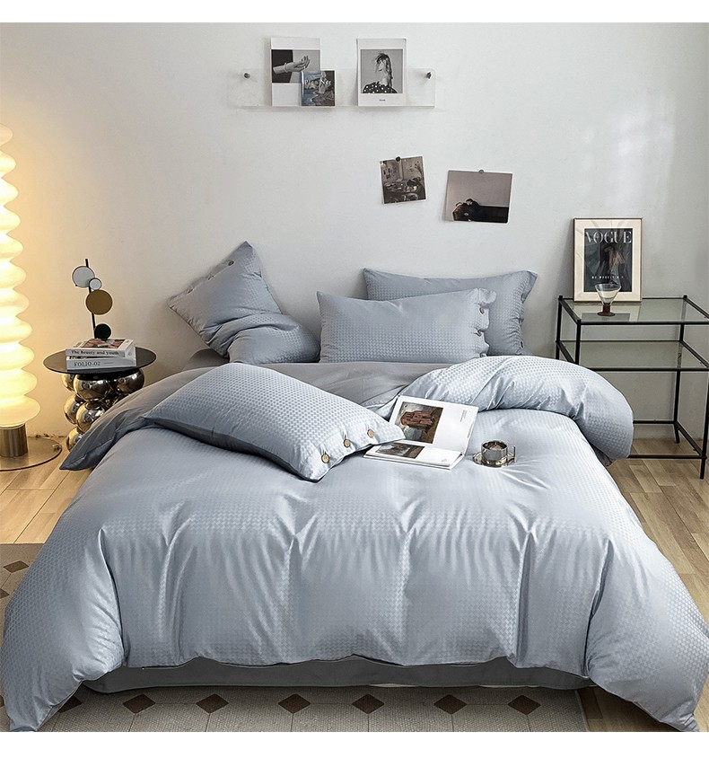 当前位置: 91家纺网 > 商品网购 > 床品套件 > 四件套 > 提花四件套 > 古吉梦 2023新款A类抗菌防螨水洗真丝纽扣提花四件套 纽扣提花-海青+浅灰
