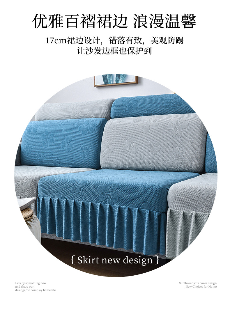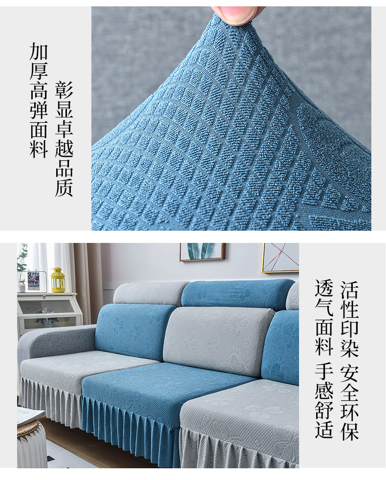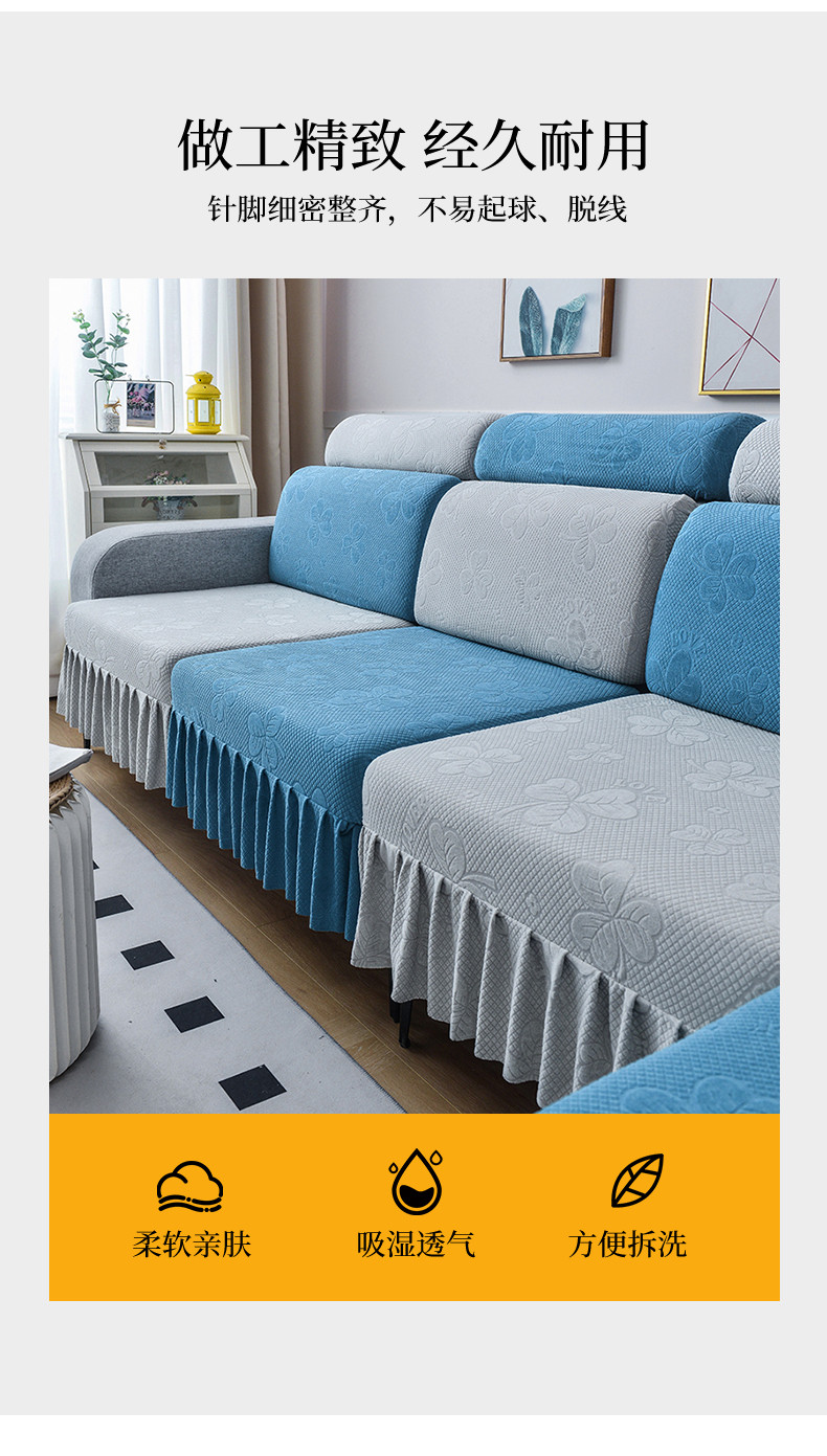 当前位置: 91家纺网 > 商品网购 > 居家布艺 > 坐垫/椅垫/沙发垫 > 沙发垫 > 千彤 2023新款裙边-三叶草沙发笠系列 沙发套罩 水蓝银灰