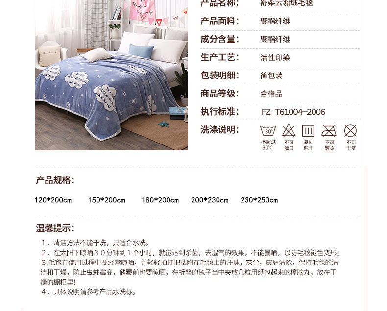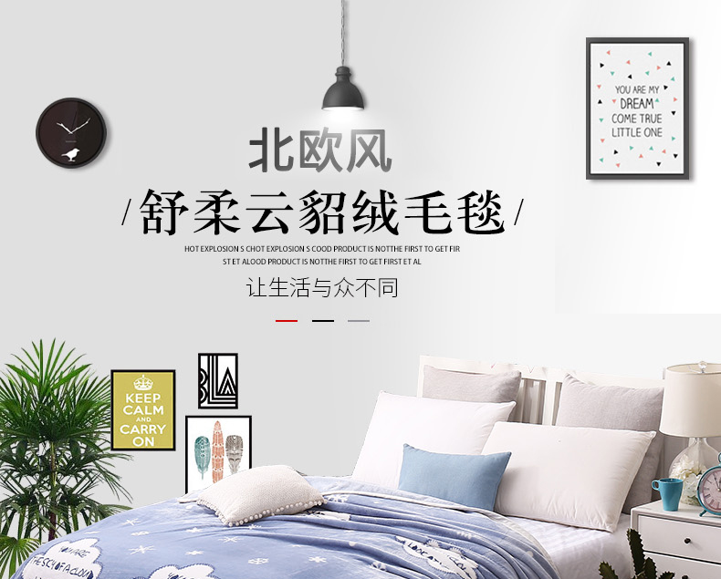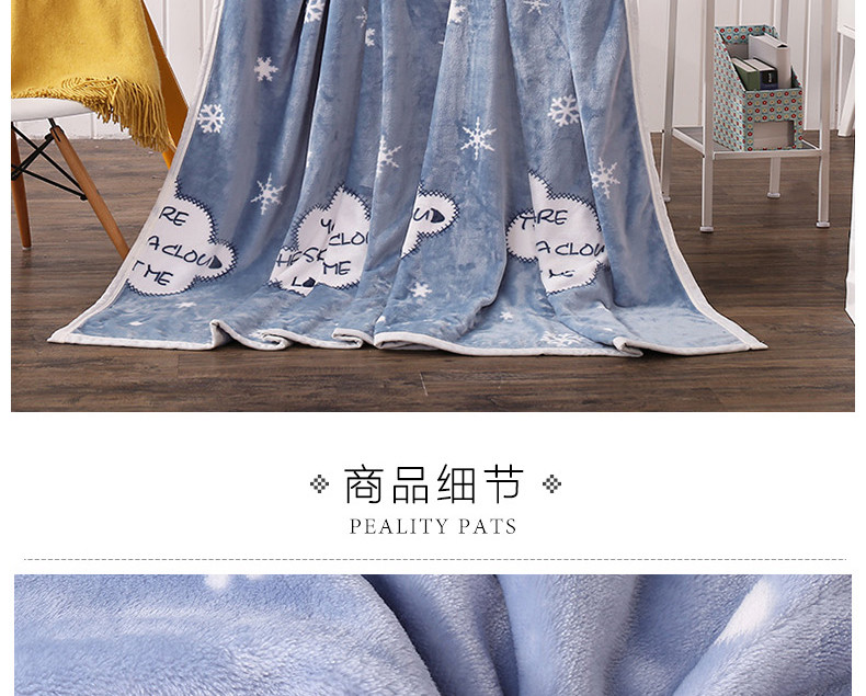 商品名称:肖恩毯业 2025新款印花云貂绒毛毯沙发盖毯午睡毯子 雪中情蓝