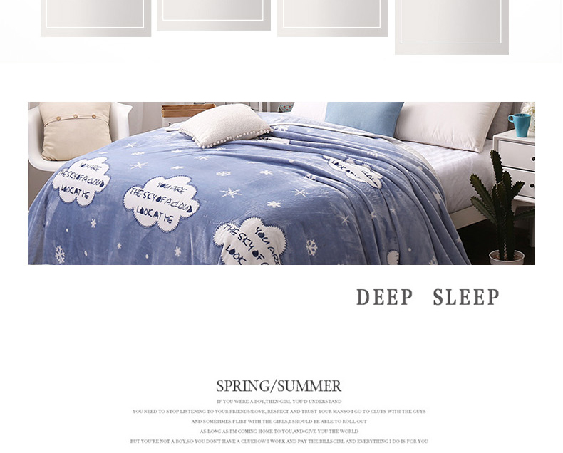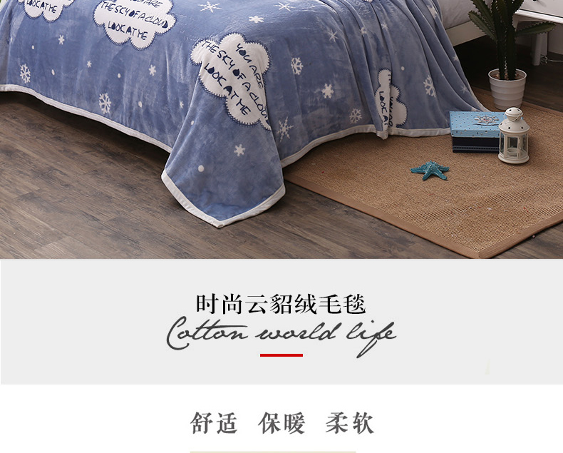 肖恩毯业 2025新款印花云貂绒毛毯沙发盖毯午睡毯子 雪中情蓝