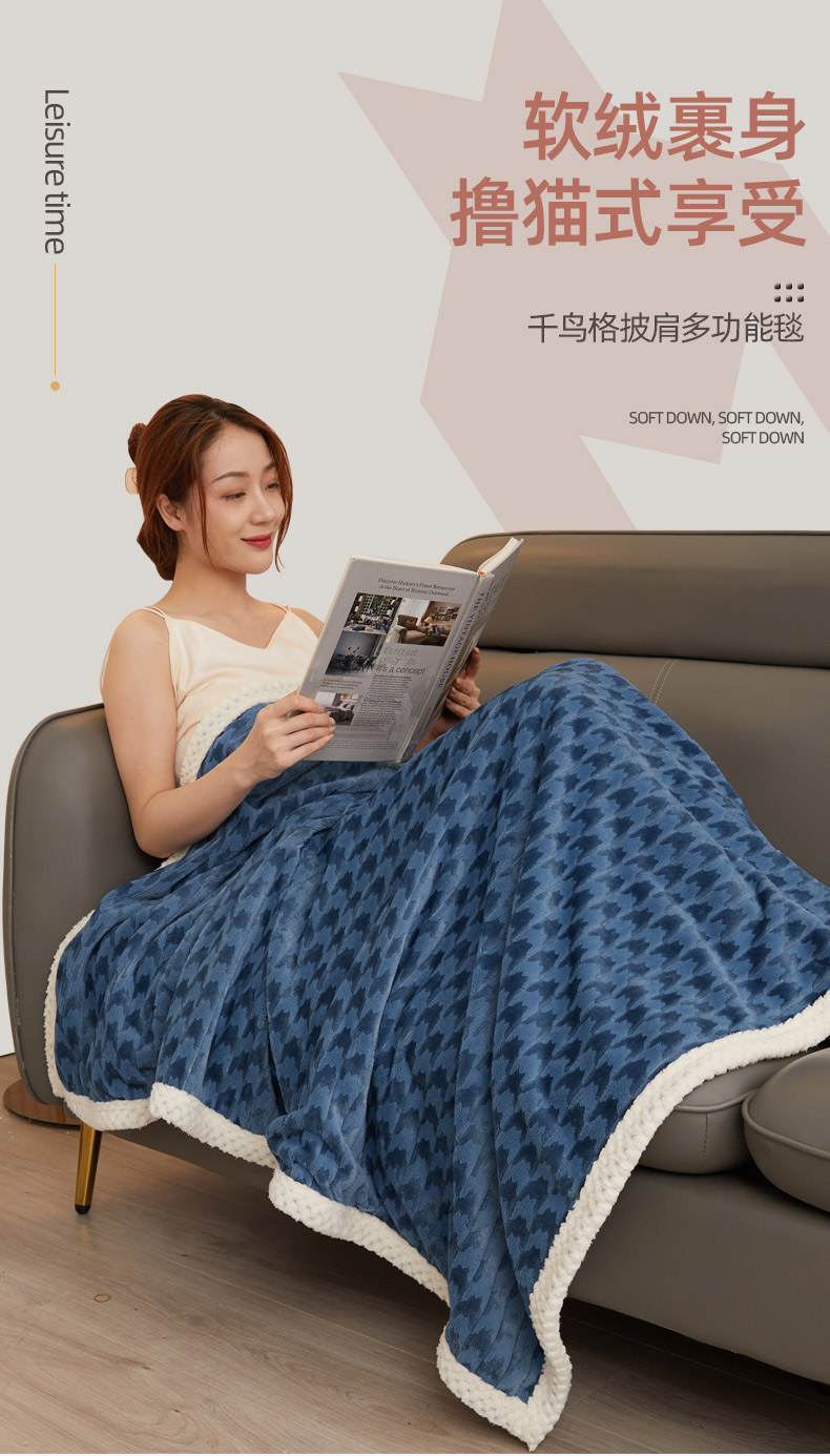 (总)肖恩毯业 2025新款千鸟格披肩多功能盖毯