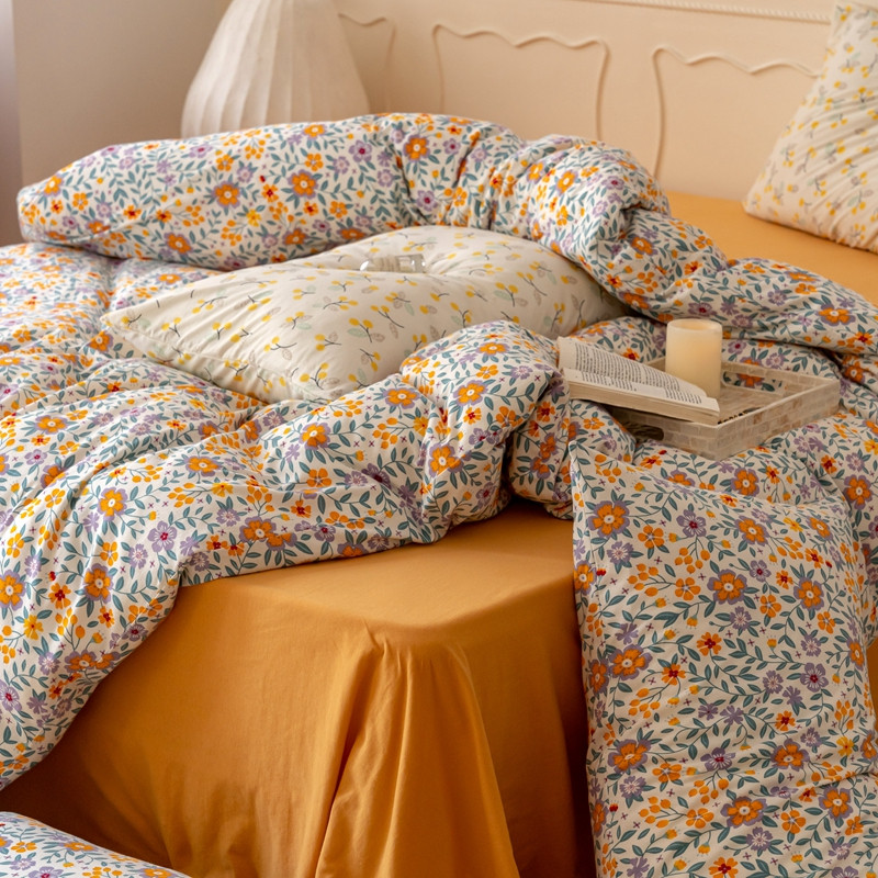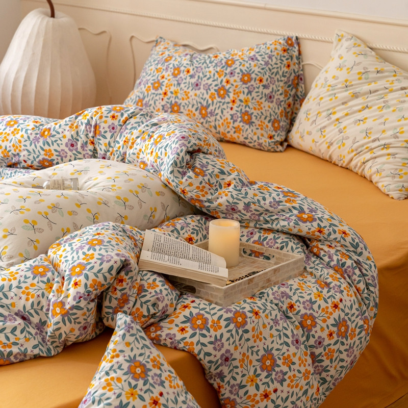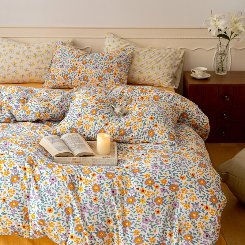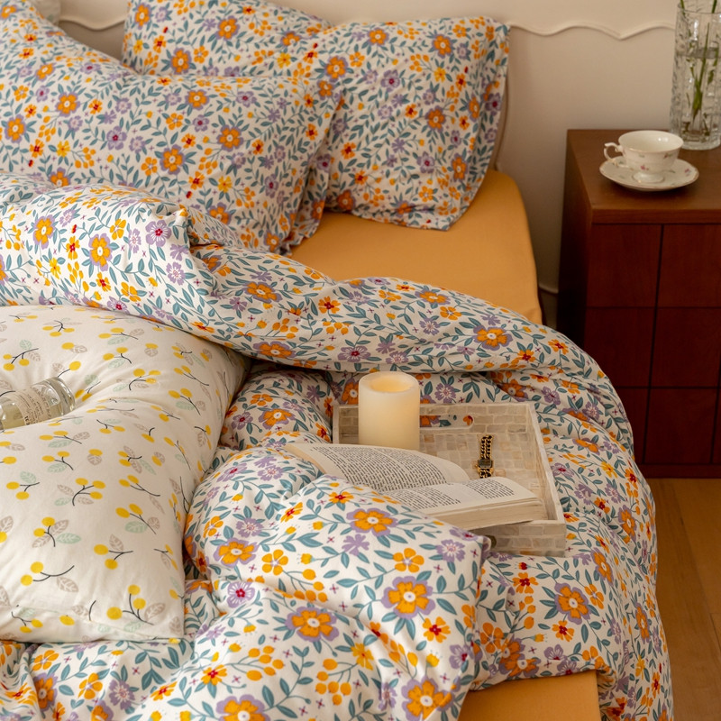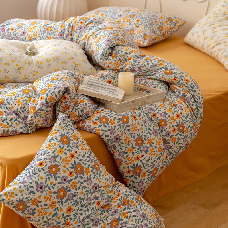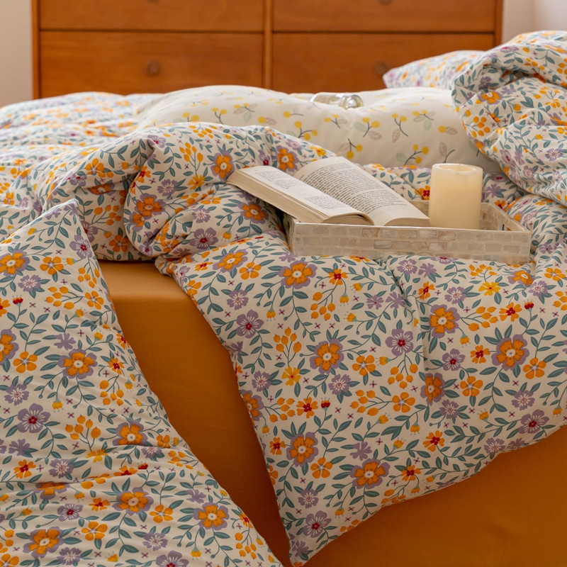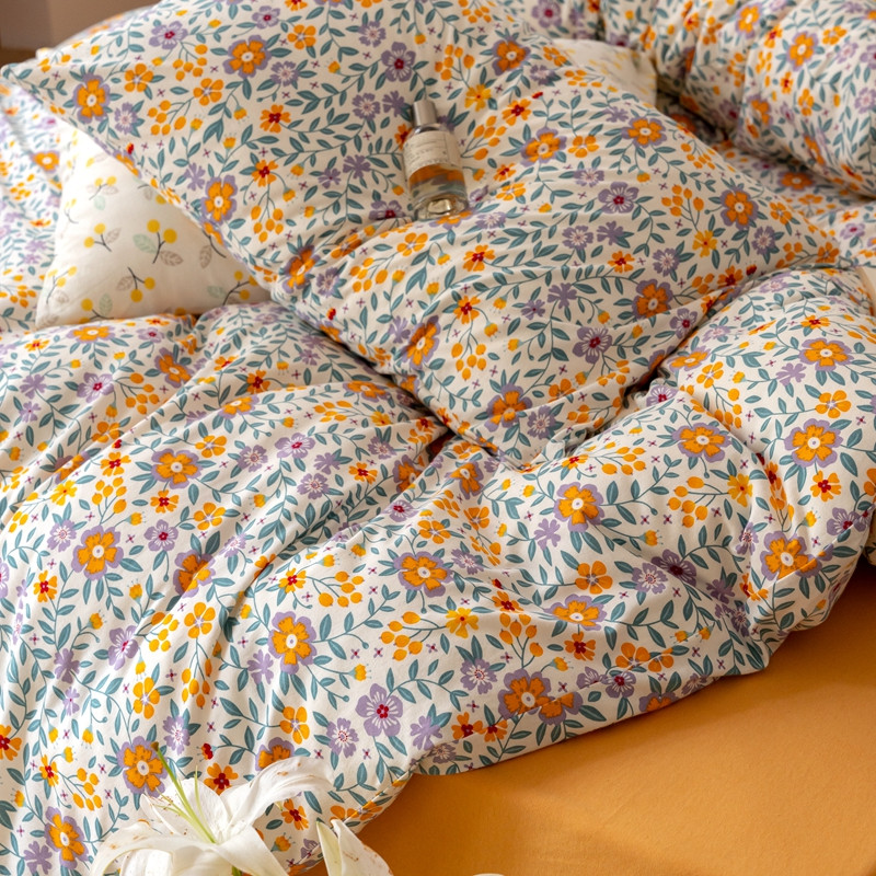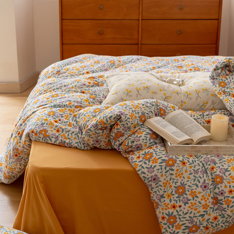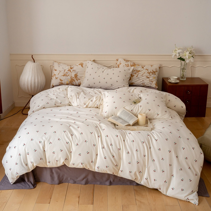 (总)华超针织 2025新款亲肤舒适全棉纯棉针织五件套四件套,奶糖+樱桃,杏粉+花田,杏灰+玫瑰