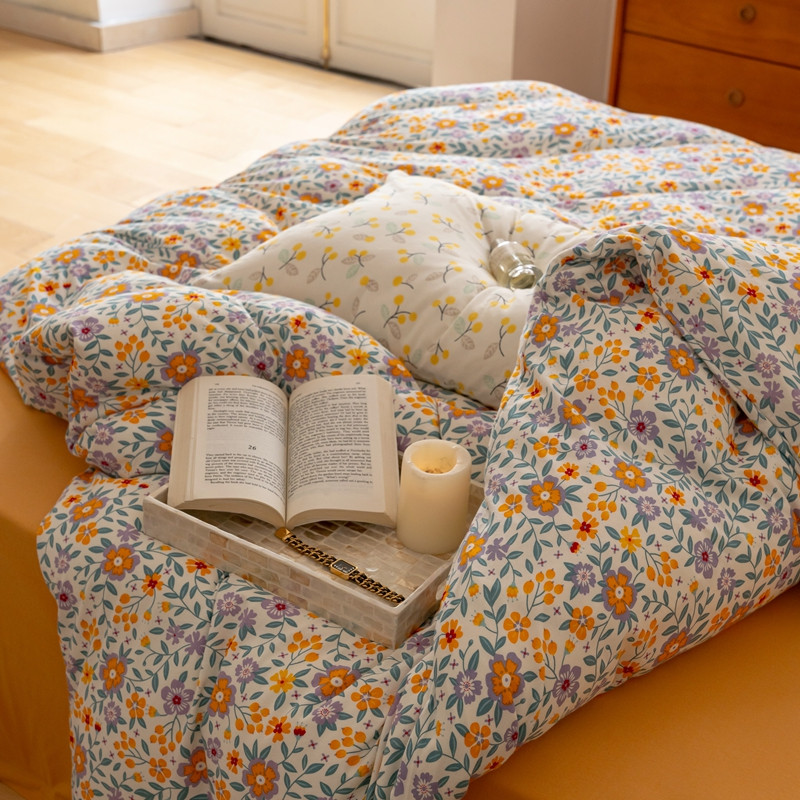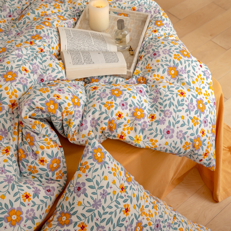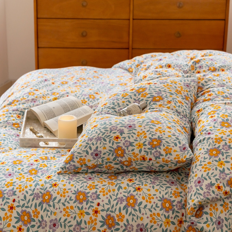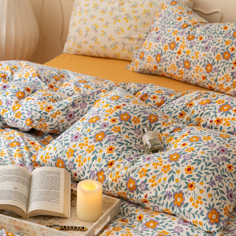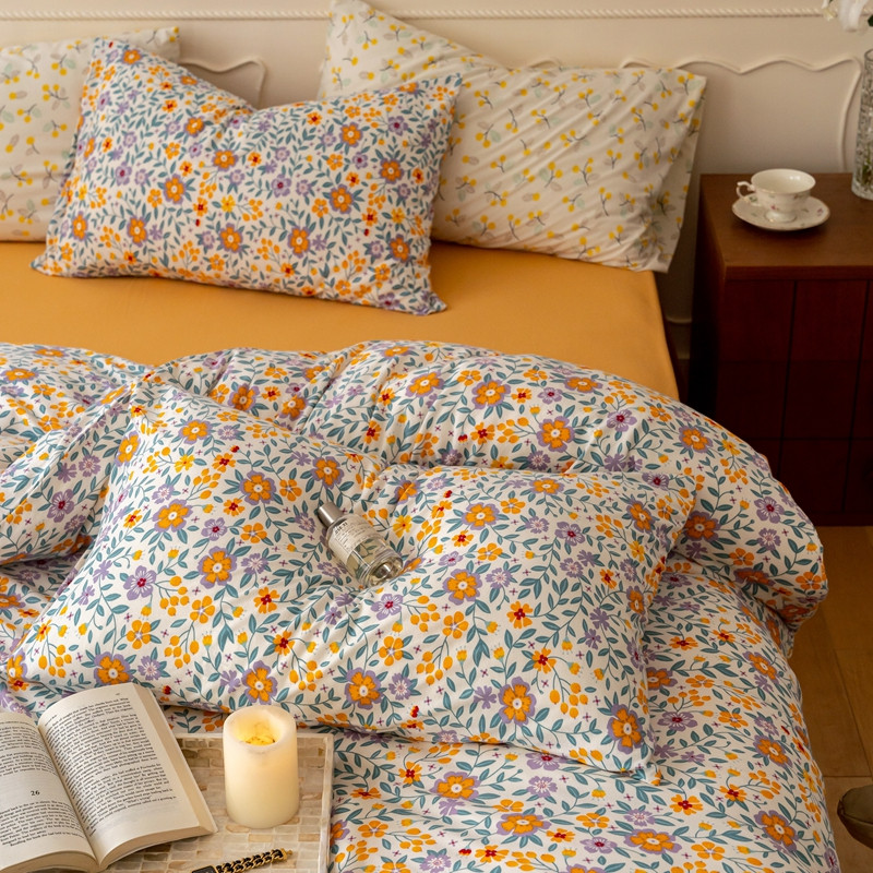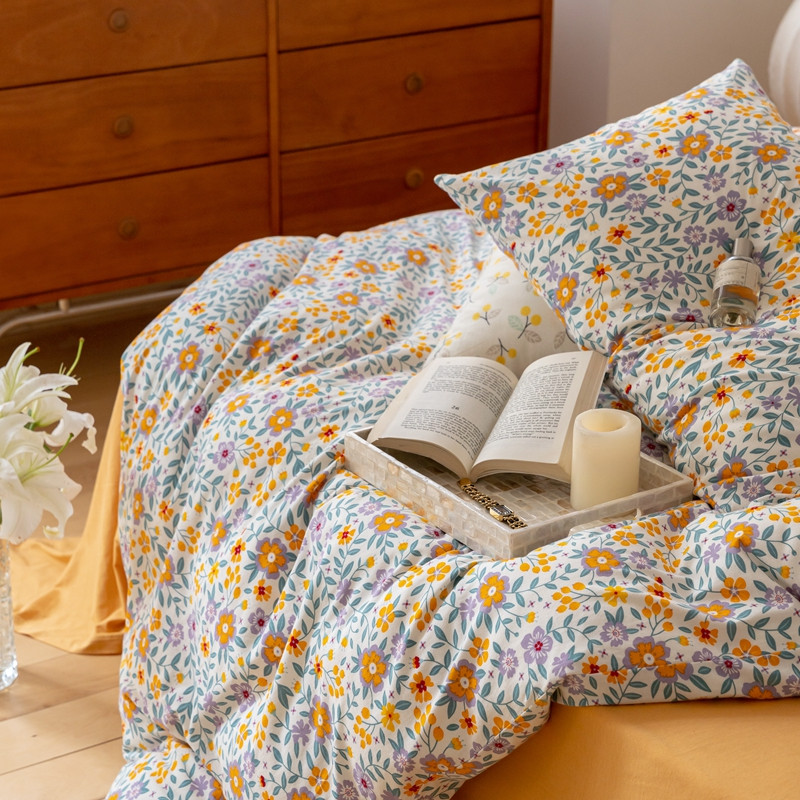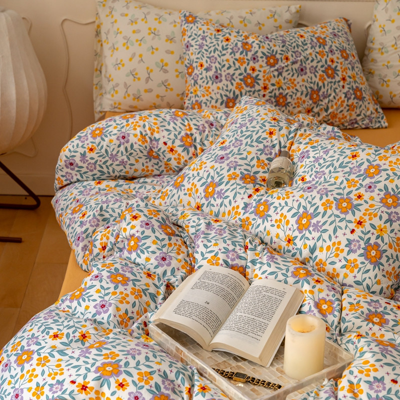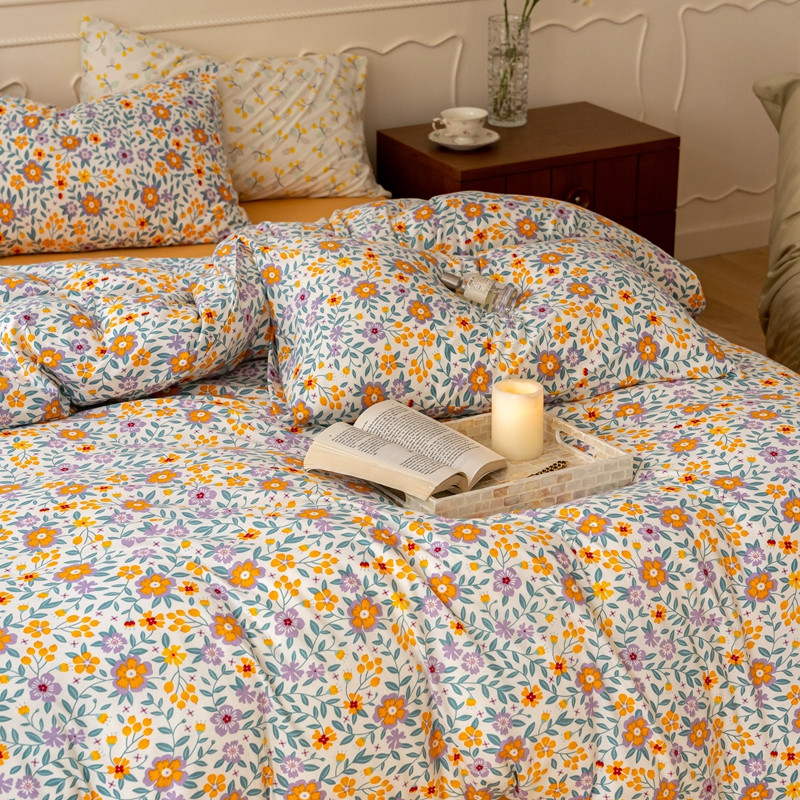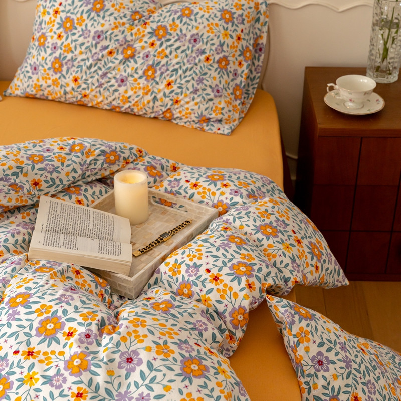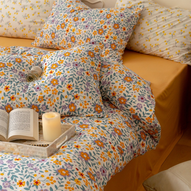 (总)华超针织 2025新款亲肤舒适全棉纯棉针织五件套四件套,奶糖+樱桃,杏粉+花田,杏灰+玫瑰