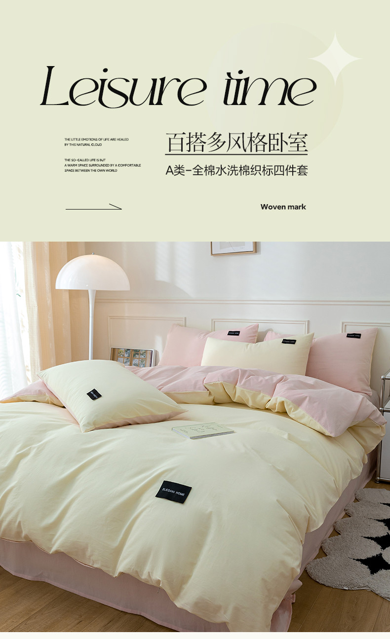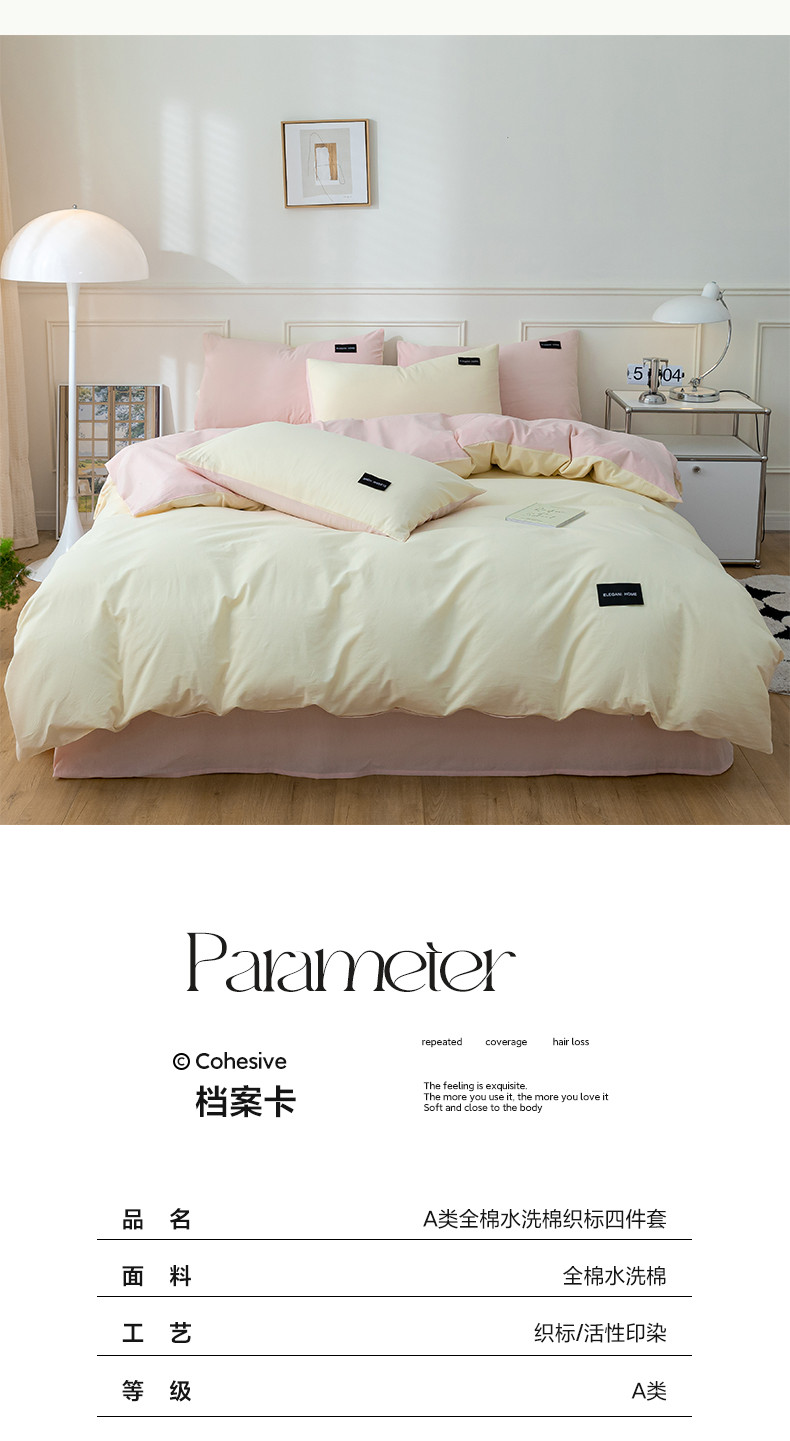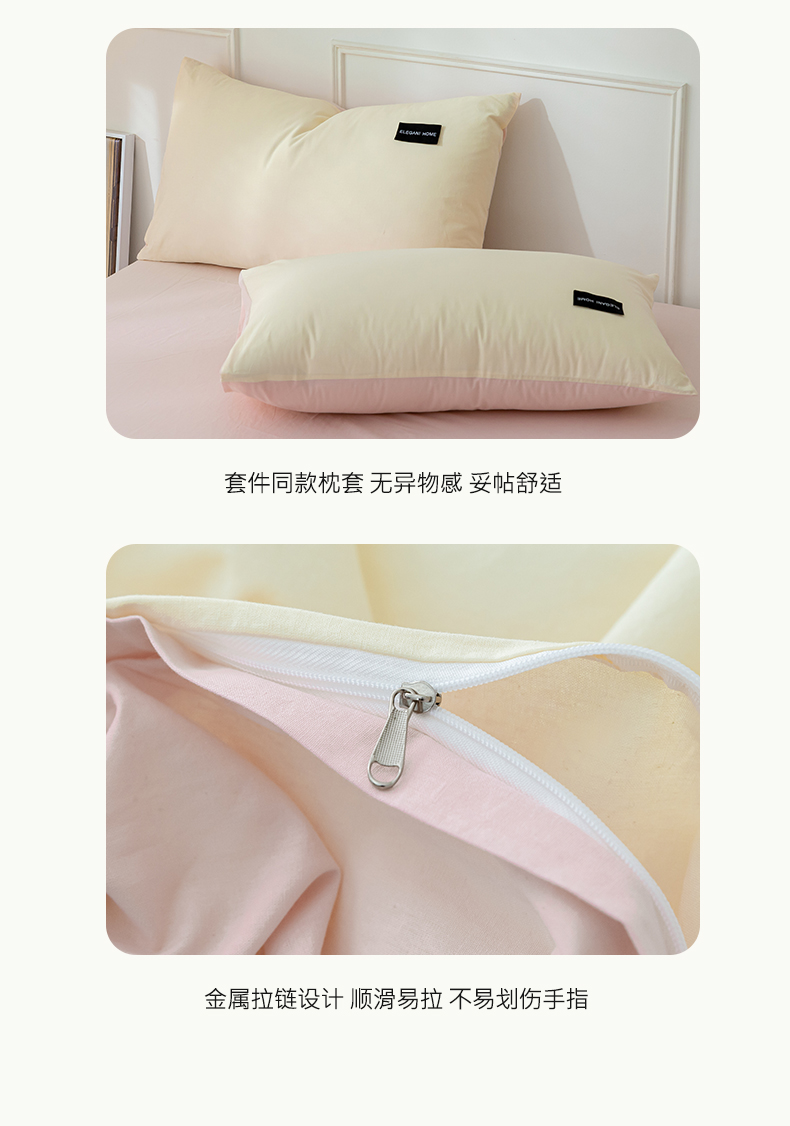 九沐良品 新款全棉水洗棉双拼款四件套学生三件套 简悠-奶油粉
