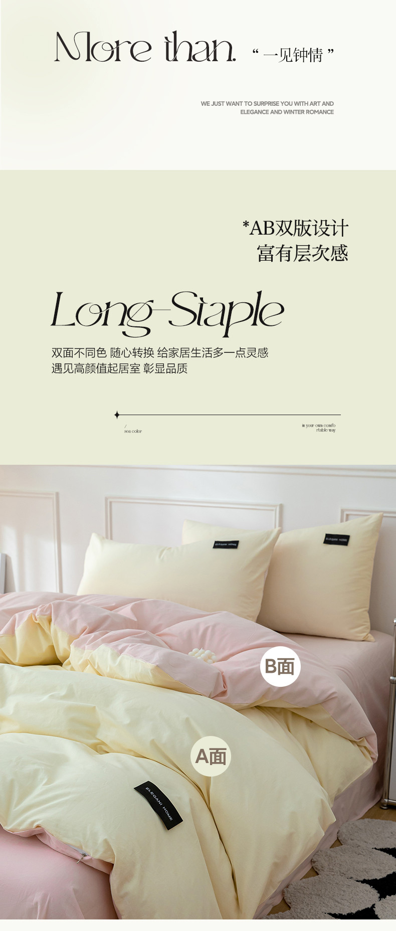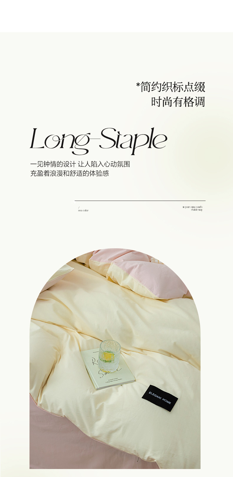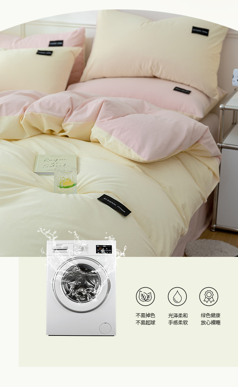 九沐良品 新款全棉水洗棉双拼款四件套学生三件套 简悠-奶油粉