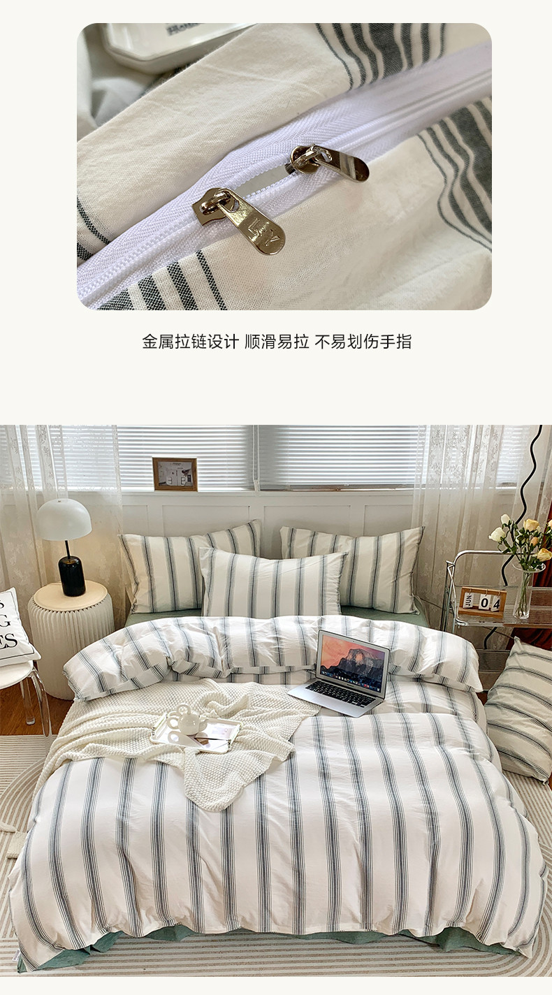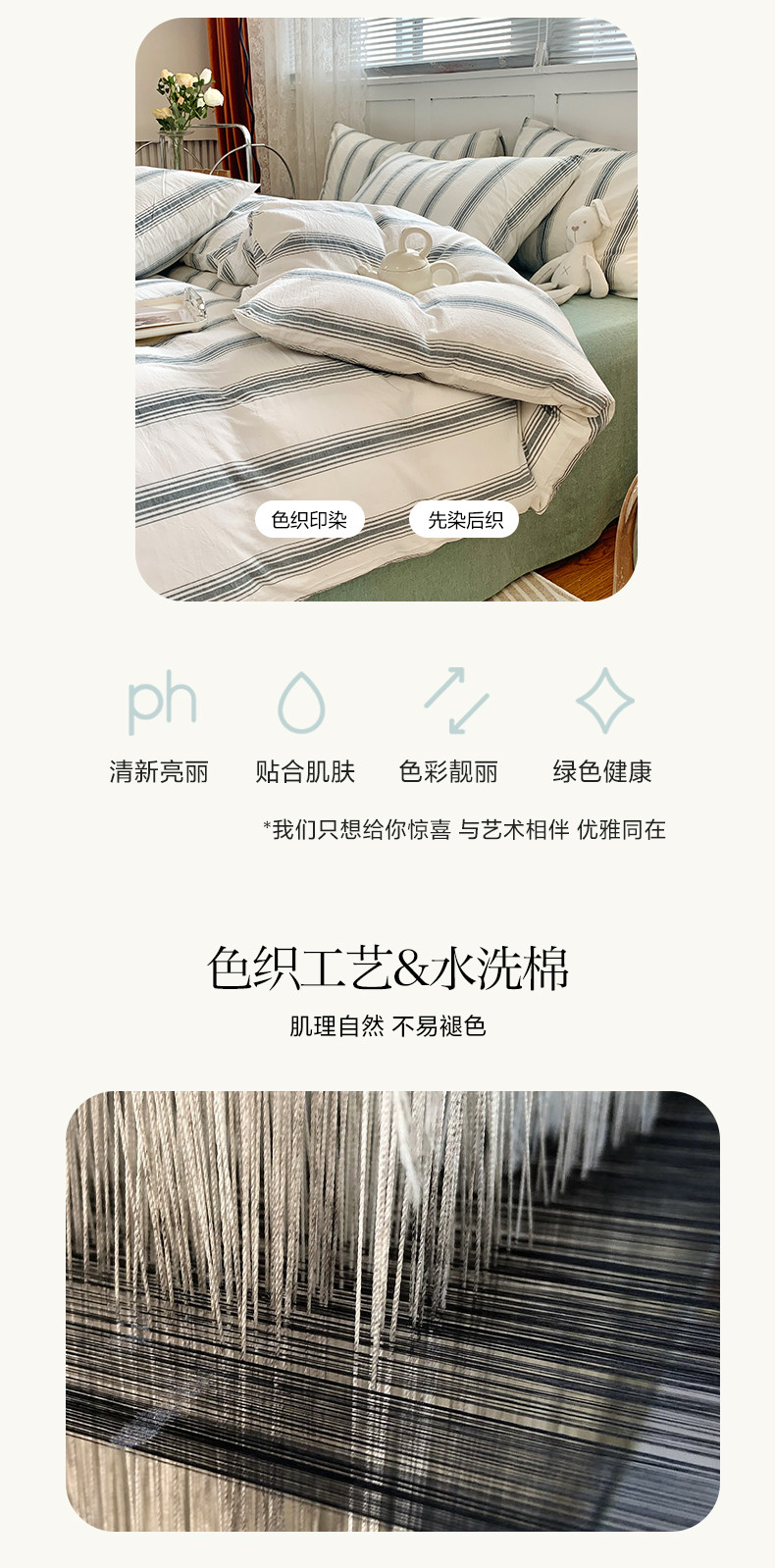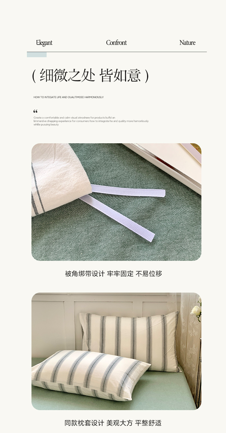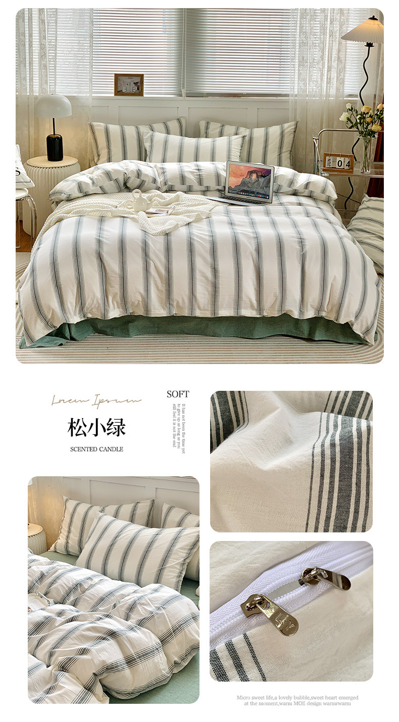 莱茵家居 2024新款色织水洗棉小小系列四件套 松小绿