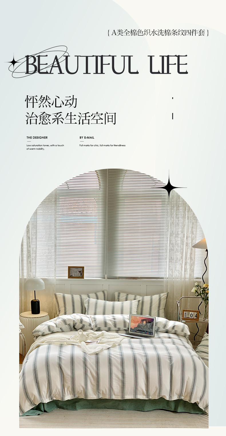 (总)莱茵家居 2025新款全棉纯棉皱皱纱条纹四件套-杼影,杼影-咖纸蓝,杼影-冷雾蓝,杼影-麦浪紫,杼影-绵云咖,杼影-奶泡粉,杼影-暖果黄,杼影-午茶绿,杼影-雨巷灰