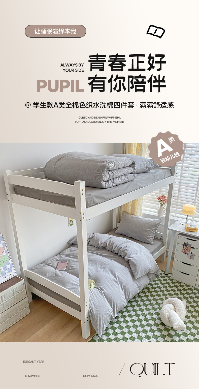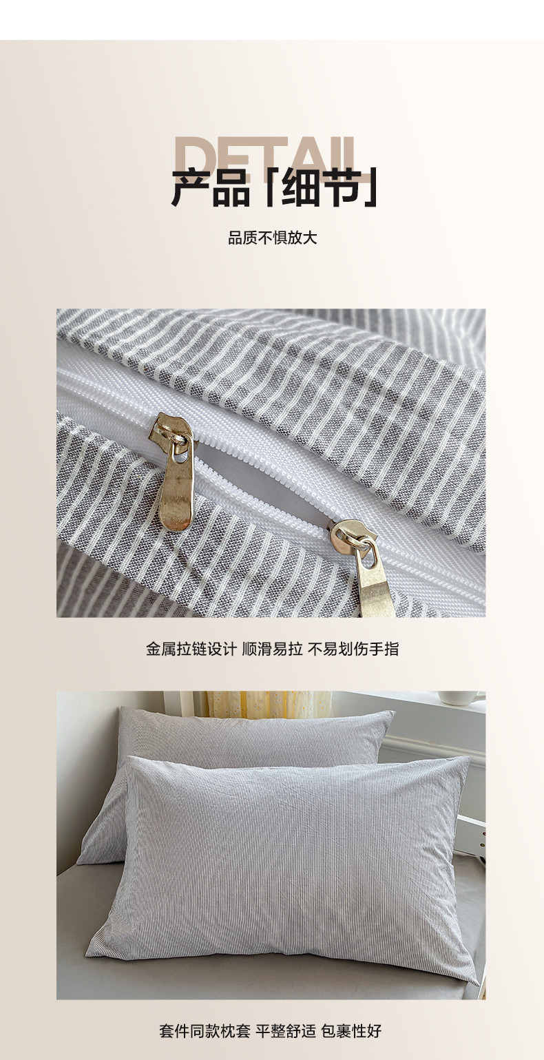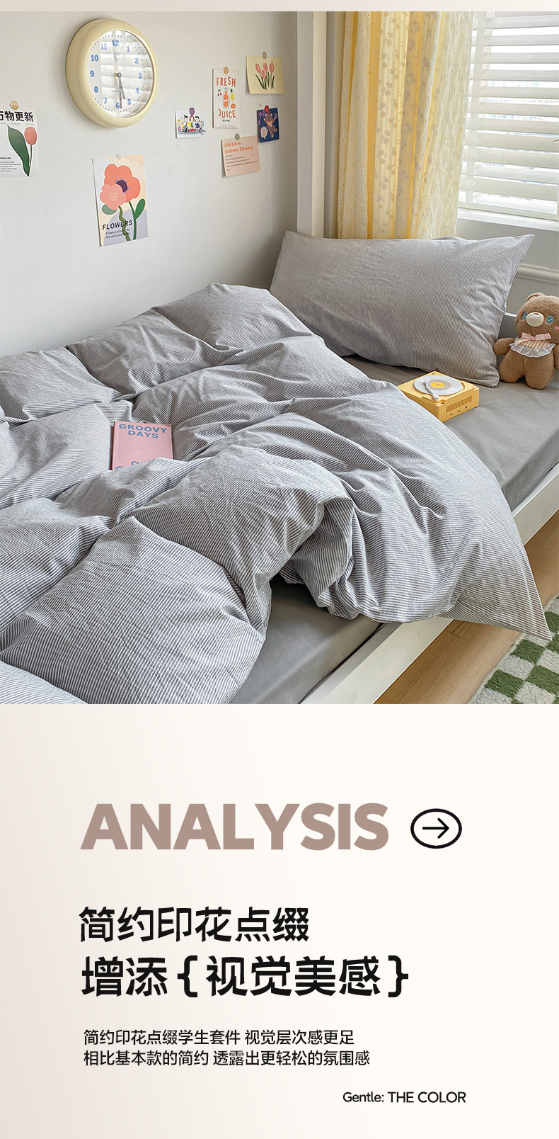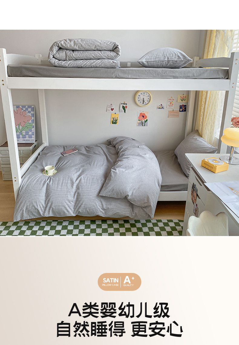 莱茵家居 2024新款色织全棉水洗棉学生床三件套 条小灰
