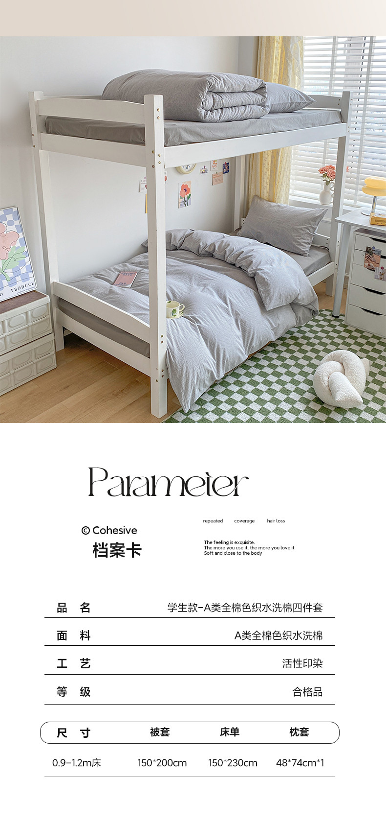 商品名称:莱茵家居 2024新款色织全棉水洗棉学生床三件套 条小灰