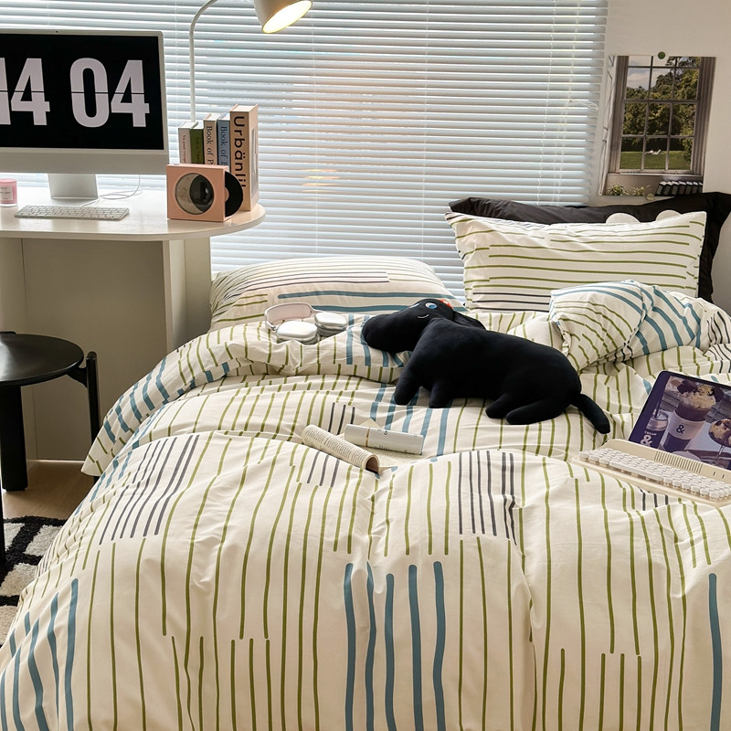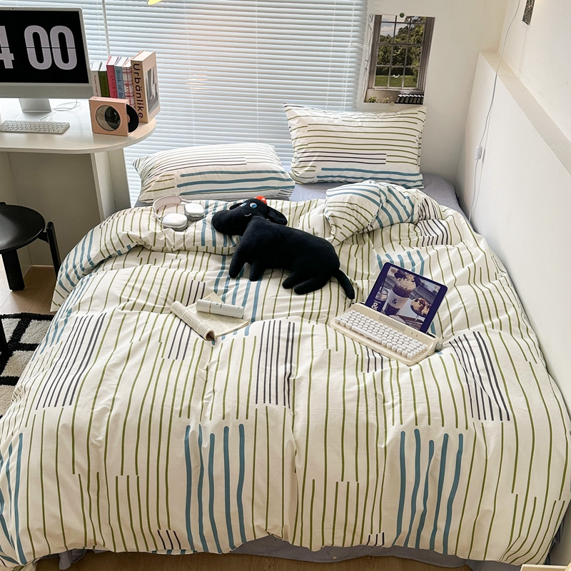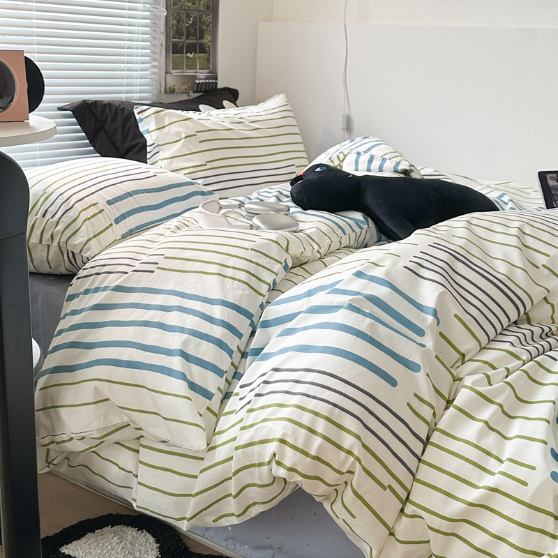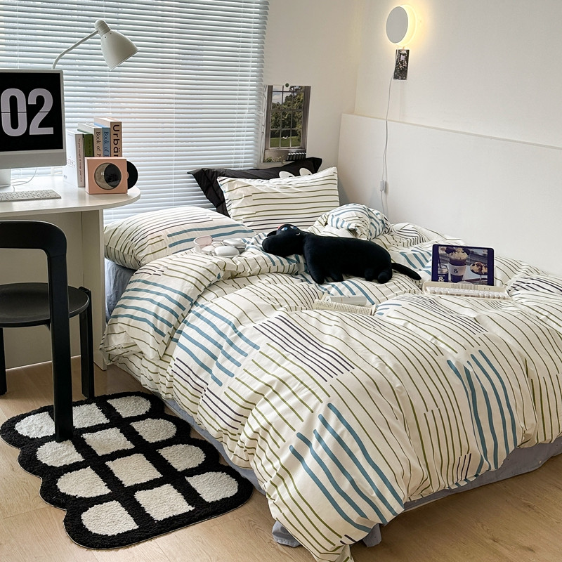 昔可家纺 2023新款全棉学生季北欧风四件套 塞纳蓝
