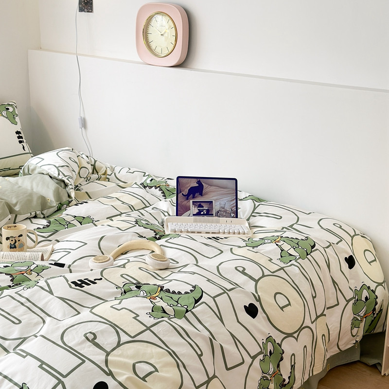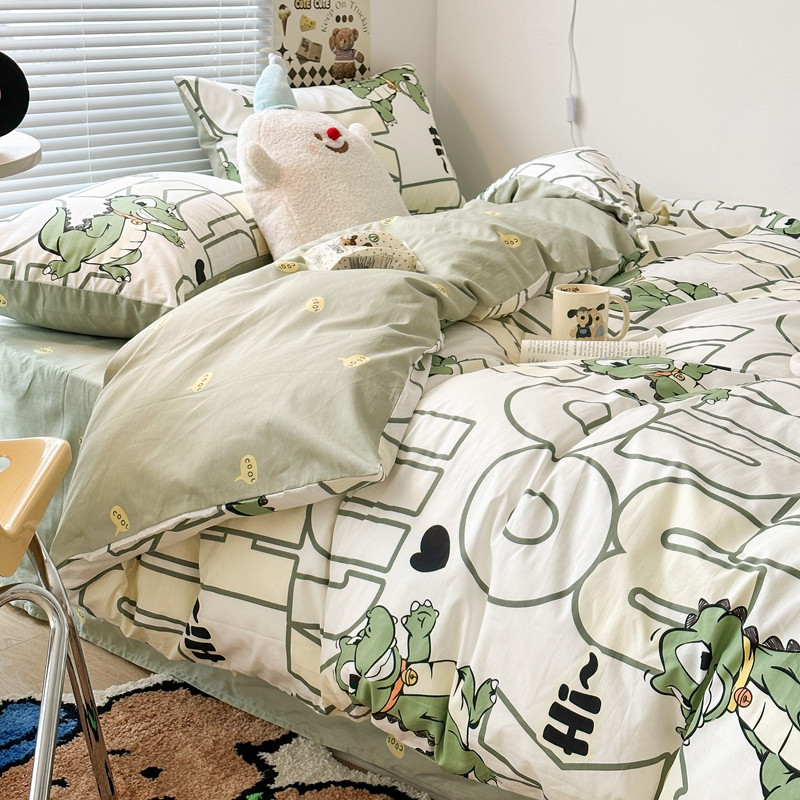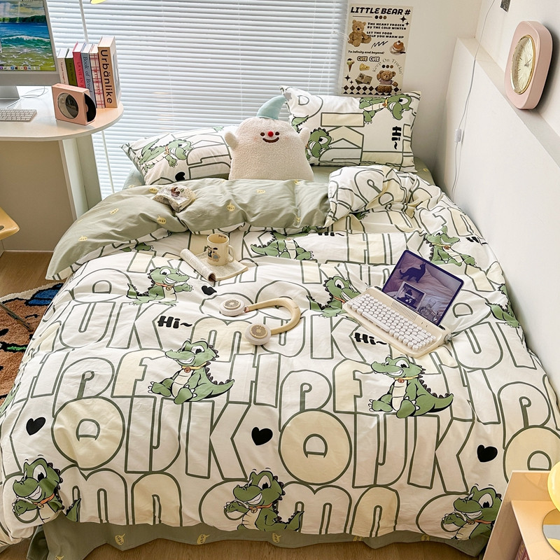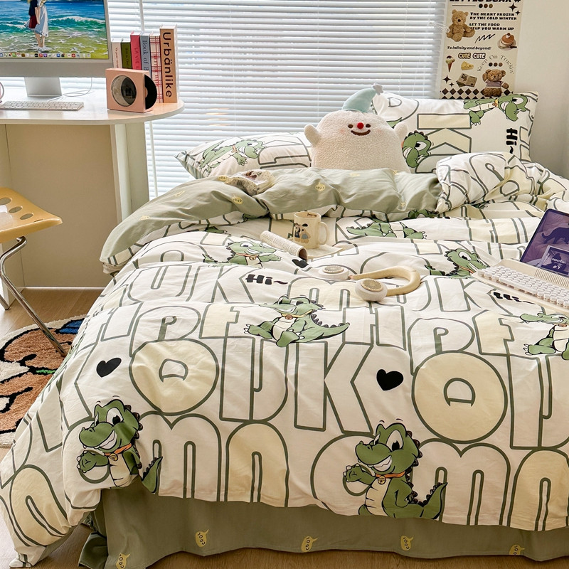 昔可家纺 2023新款全棉小卡通系列四件套 字母恐龙