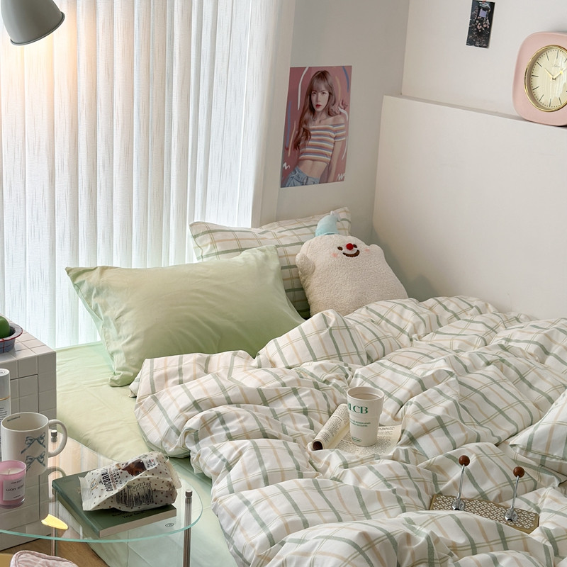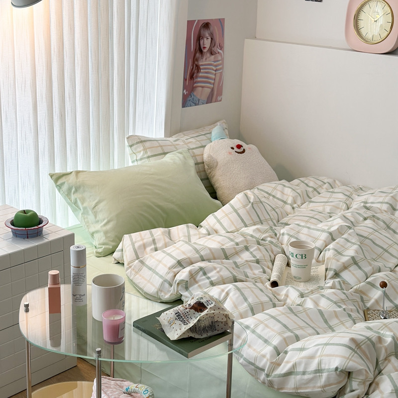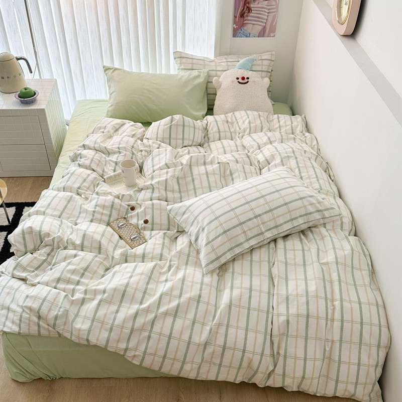 昔可 2023新款全棉ins格子混搭系列四件套 ins简约绿格
