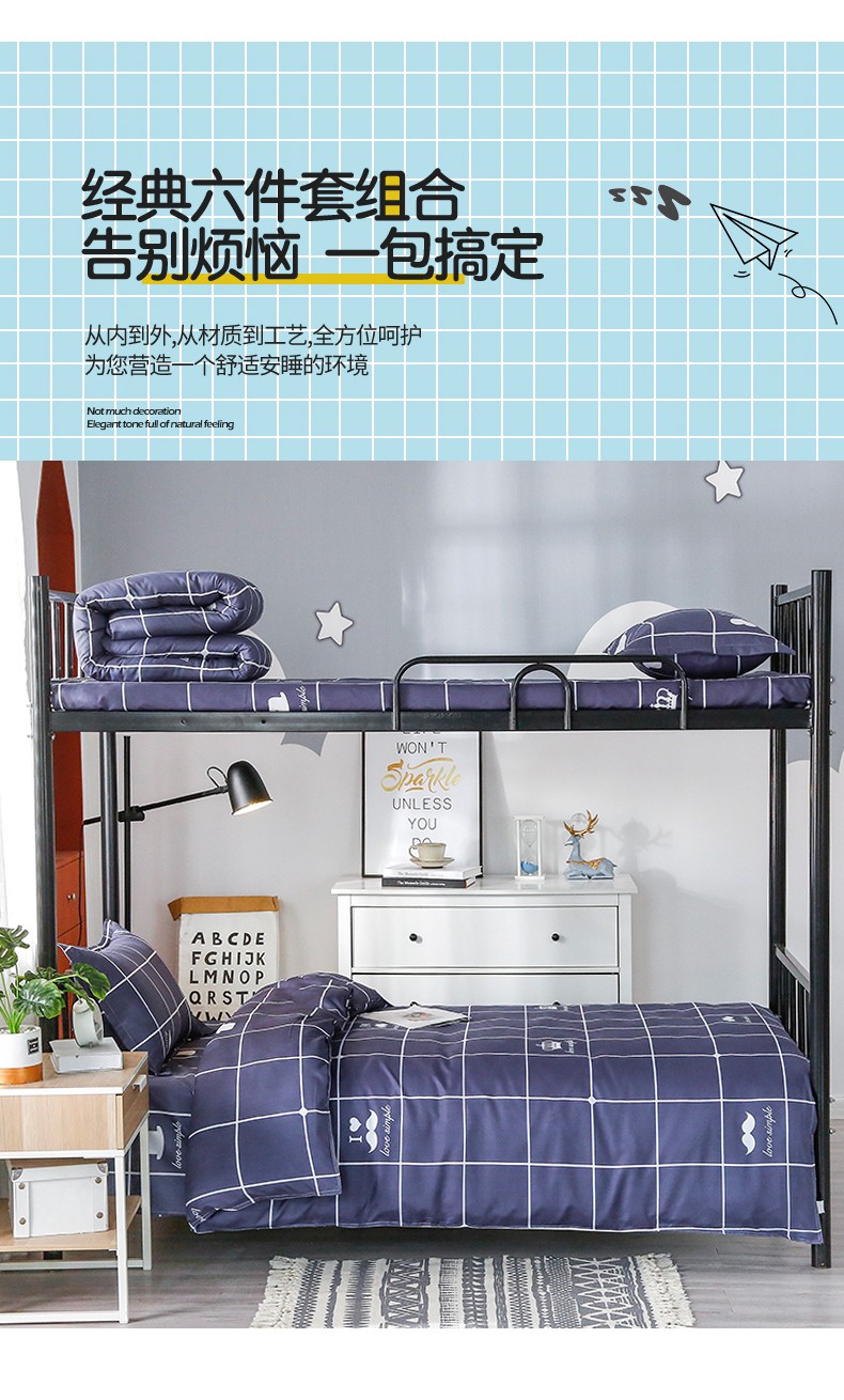商品名称:(总)2025水洗棉印花学生宿舍六件套 羽丝绒床垫床单款六件套