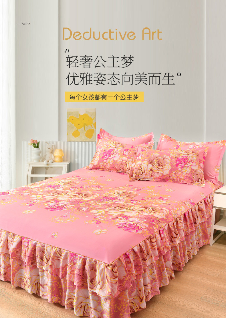 (总)小雨家纺 2026新款芦荟棉单件床裙+床裙三件套,爱巢,爱的花海紫,奥利维,百花柔情,草莓之恋,朝花夕拾粉,朝花夕拾绿,春风画梦,春天花园,风采依旧粉,风采依旧绿,灰格格,玫瑰爱人粉,玫瑰爱人紫,麋鹿森林,似水流年,妩媚花王,舞动青春,小雏菊,星光飘絮,阳光花朵粉,阳光花朵莲,雨梦兰馨