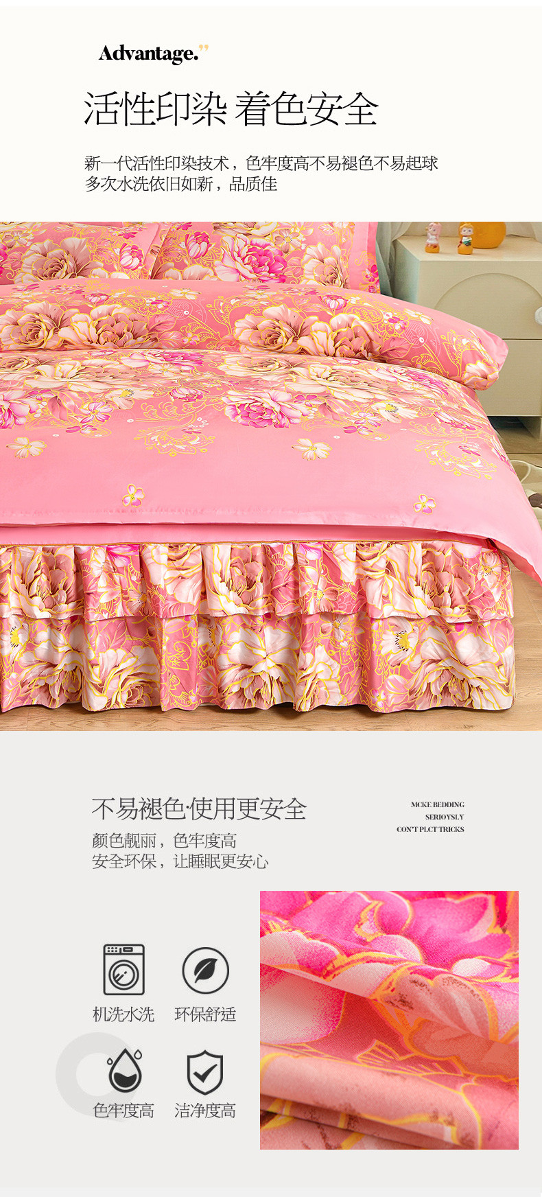 (总)小雨家纺 2026新款亲肤芦荟棉外贸蕾丝花边床裙,百花齐放蓝,繁花似锦,简约沙龙,向阳而生,知己,知心爱人