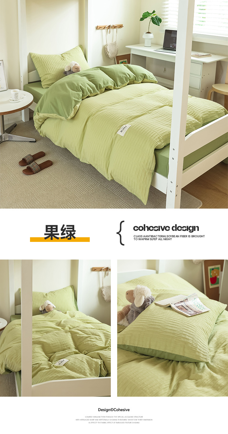 商品名称:寐眠 2023新款全棉泡泡纱学生三件套 果绿