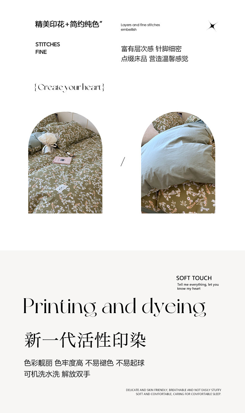 商品名称:米粒家纺 2023新款全棉印花四件套系列 日沐