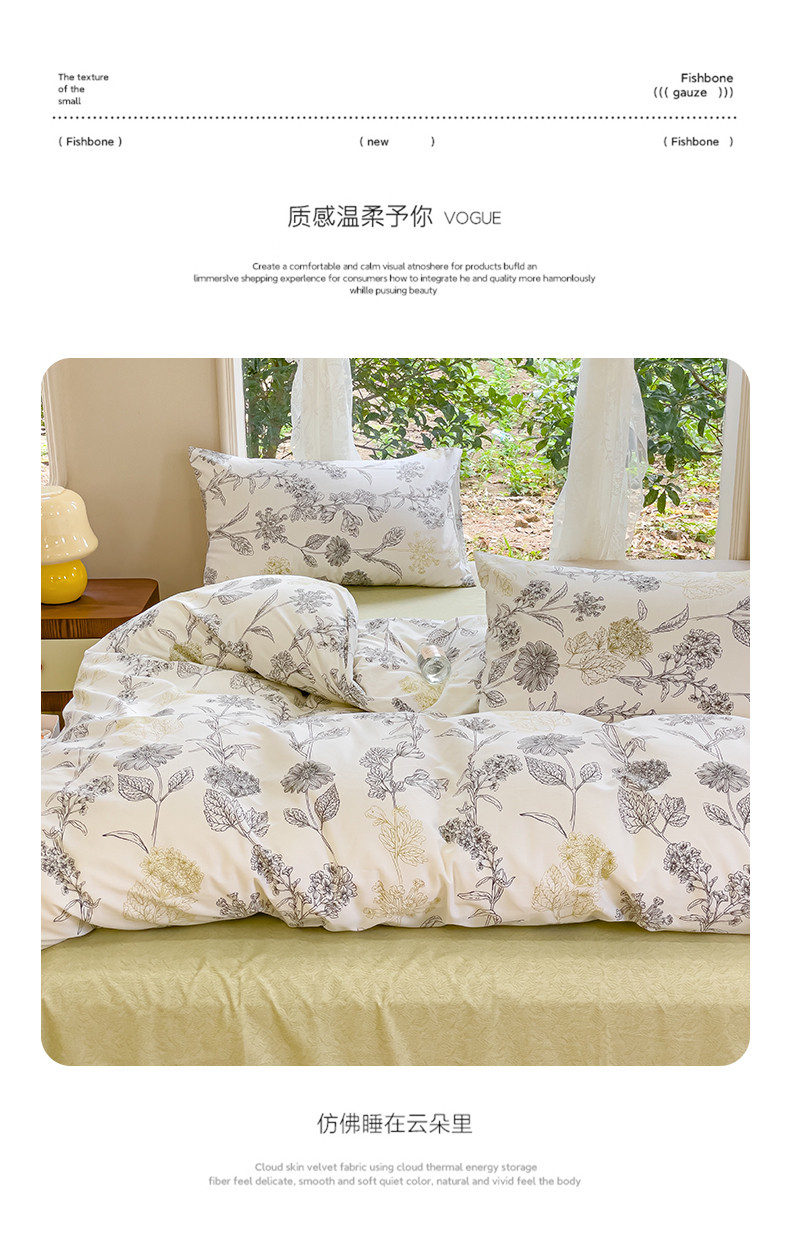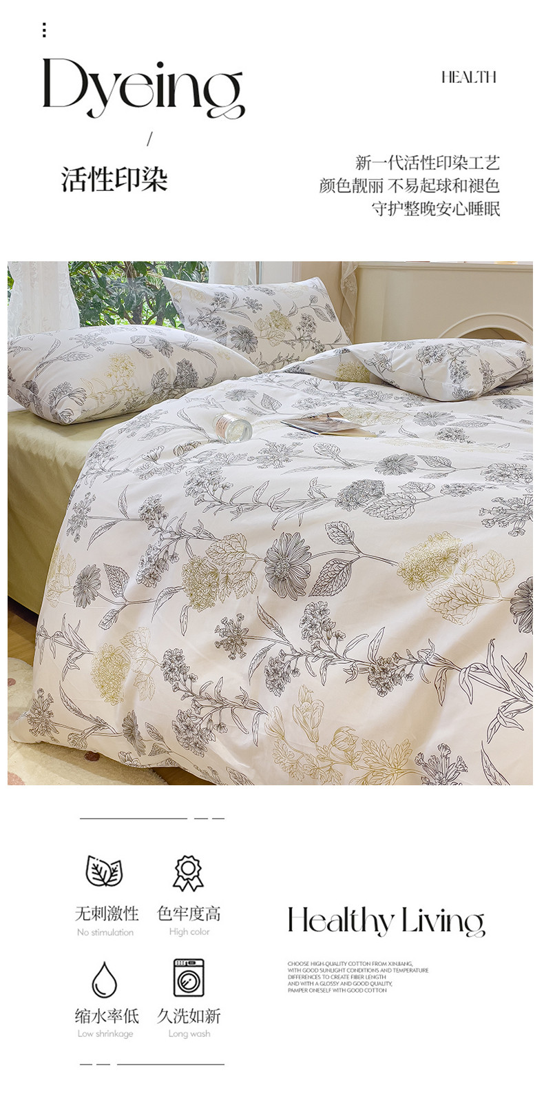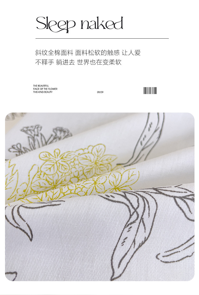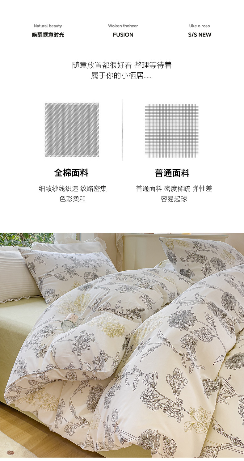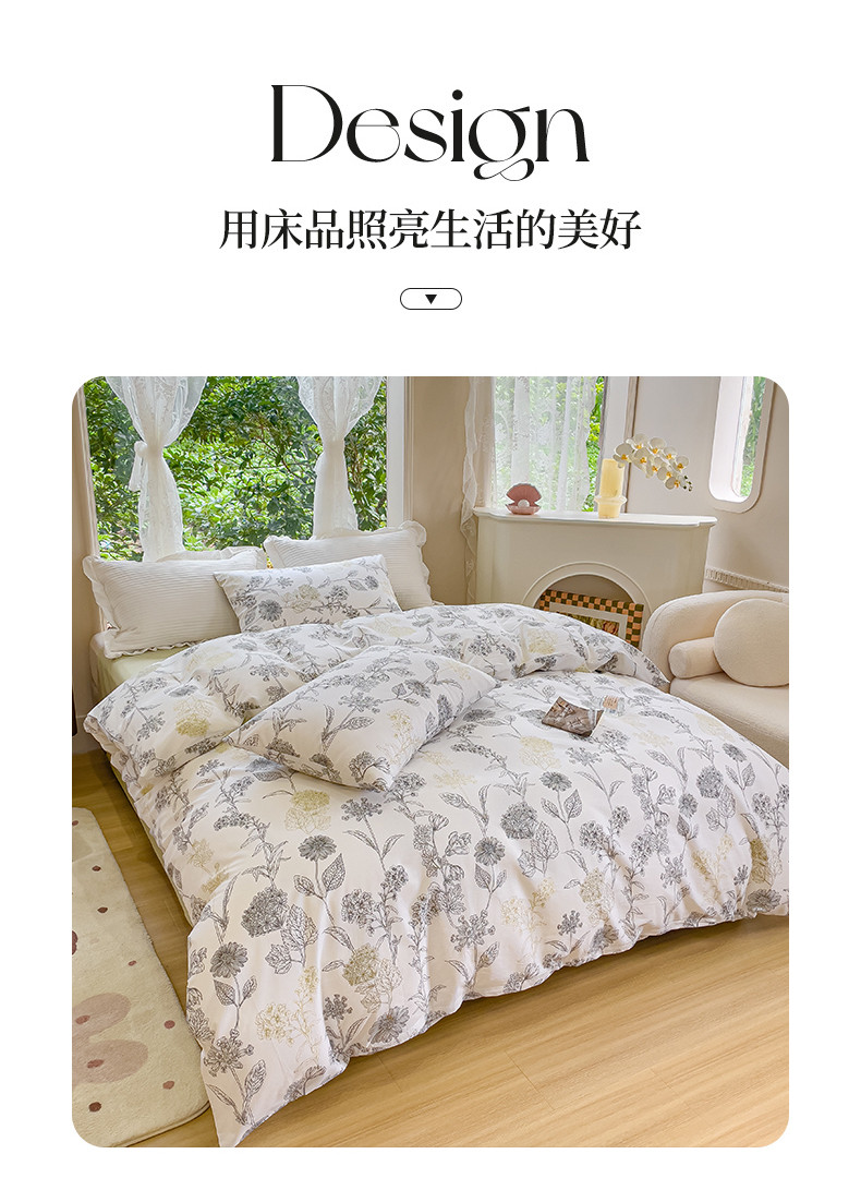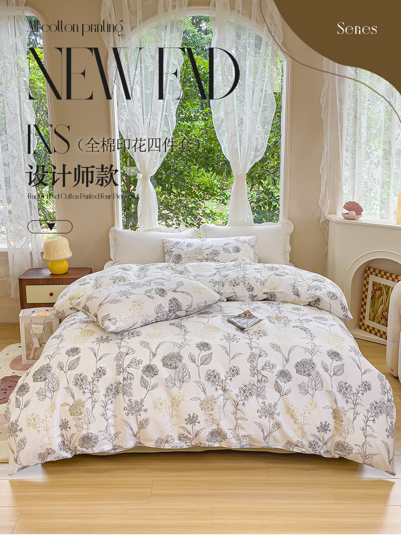 当前位置: 91家纺网 > 商品网购 > 床品套件 > 四件套 > 全棉普通四件套 > 珺柔家纺 2023新款13372全棉印花四件套 花颂