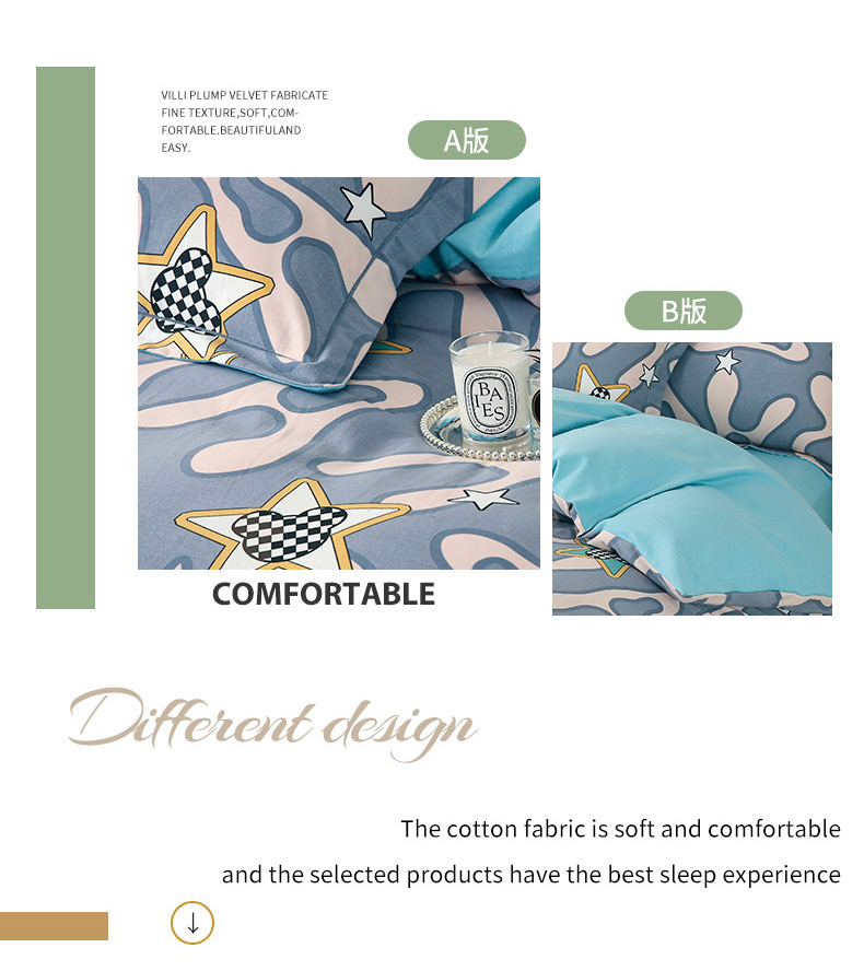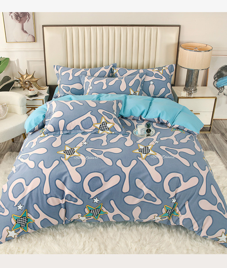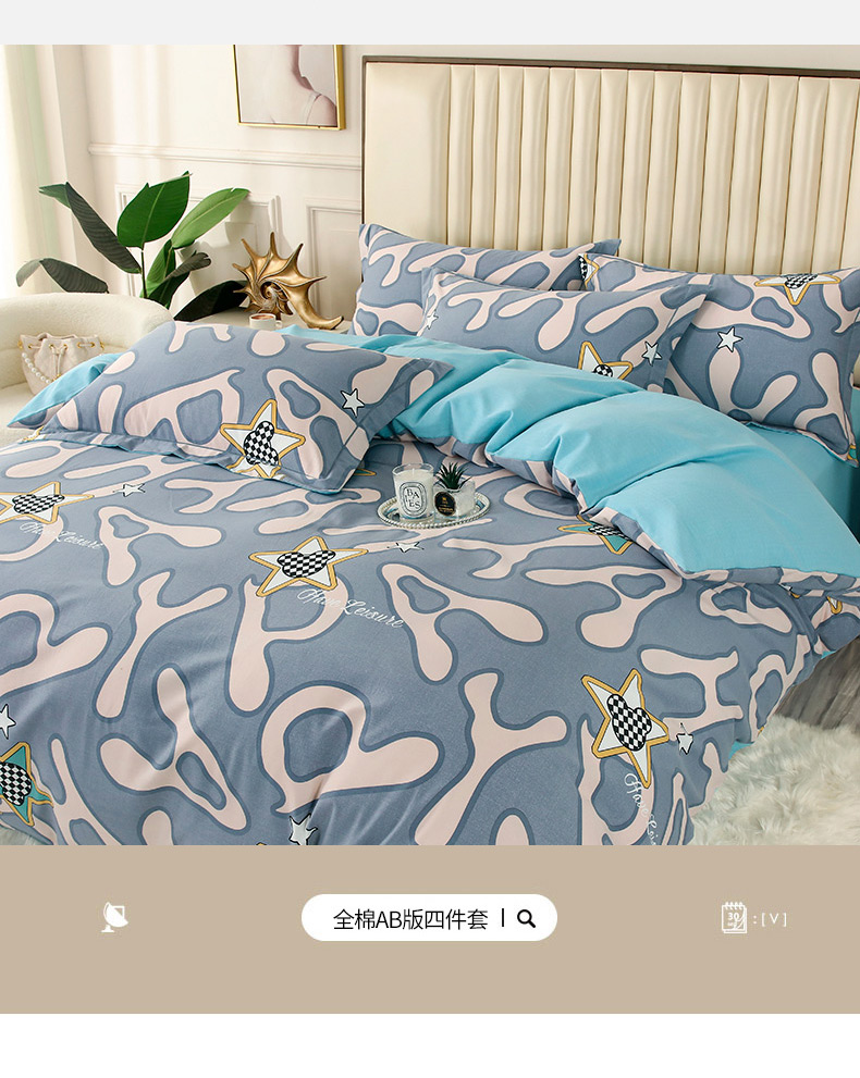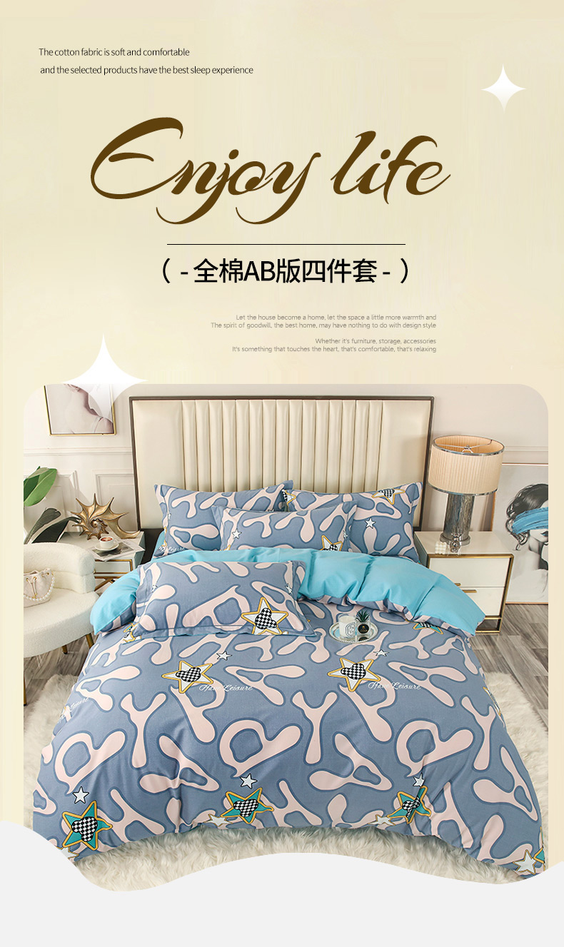 金纱玉纺家纺 2023新款纯棉加厚AB版四件套 灵动字母-蓝