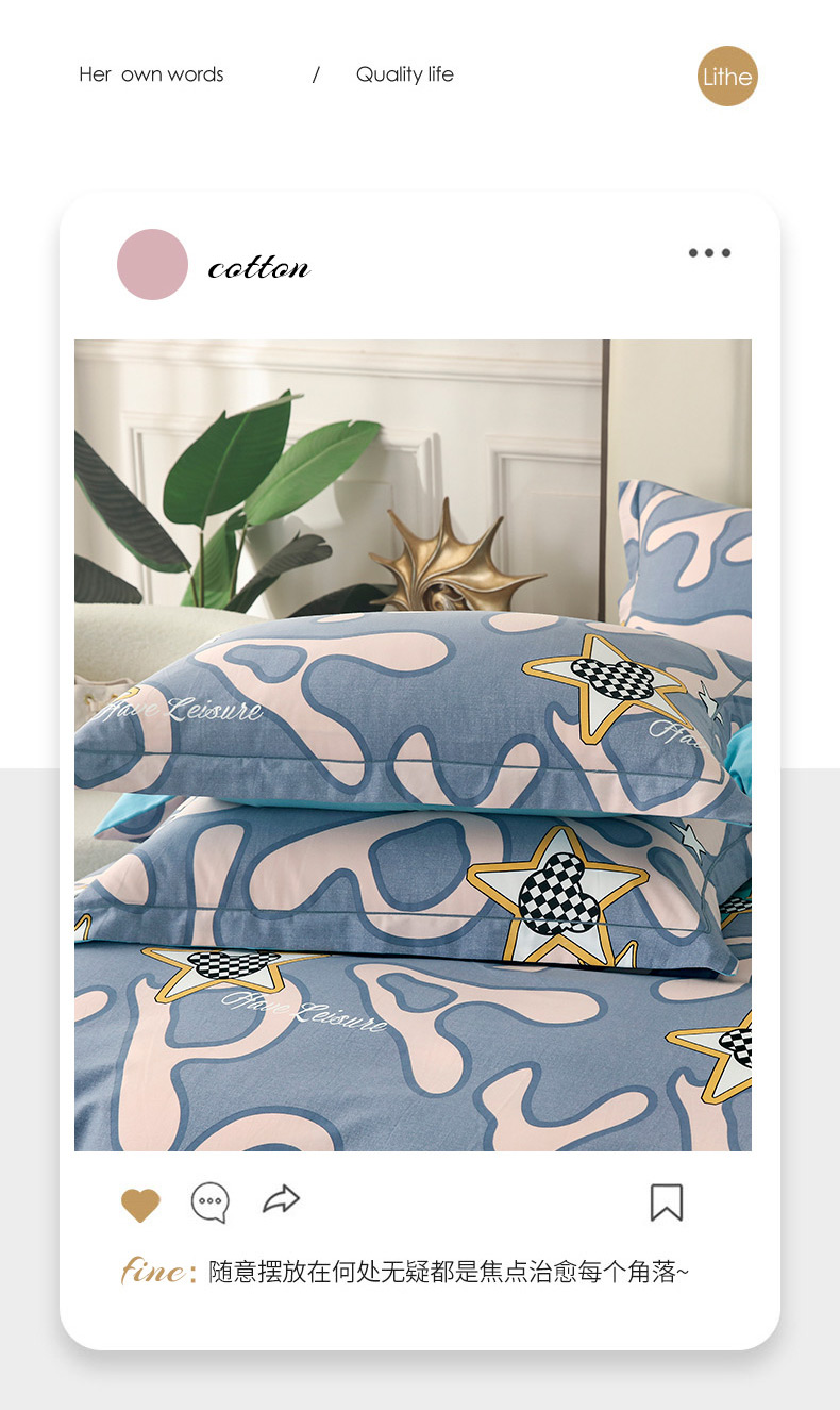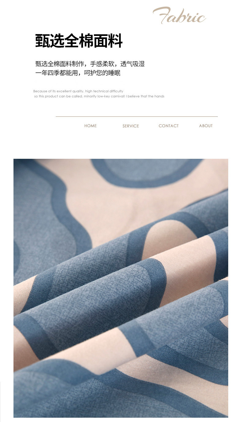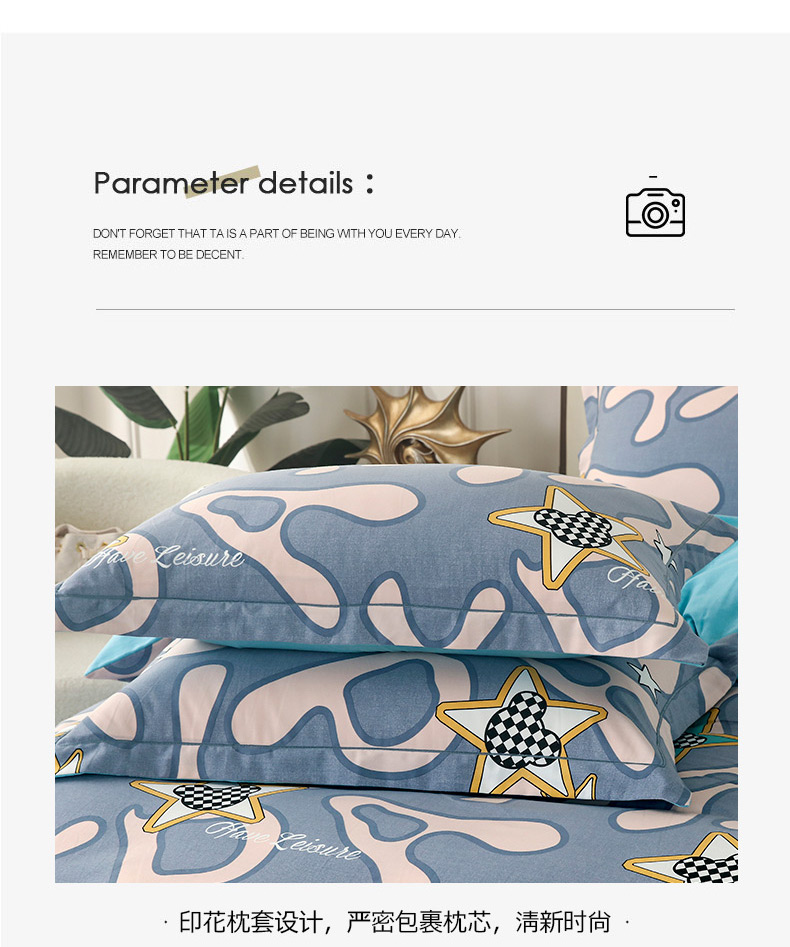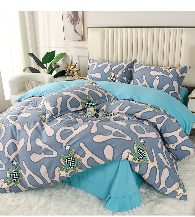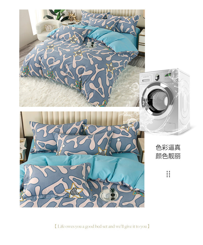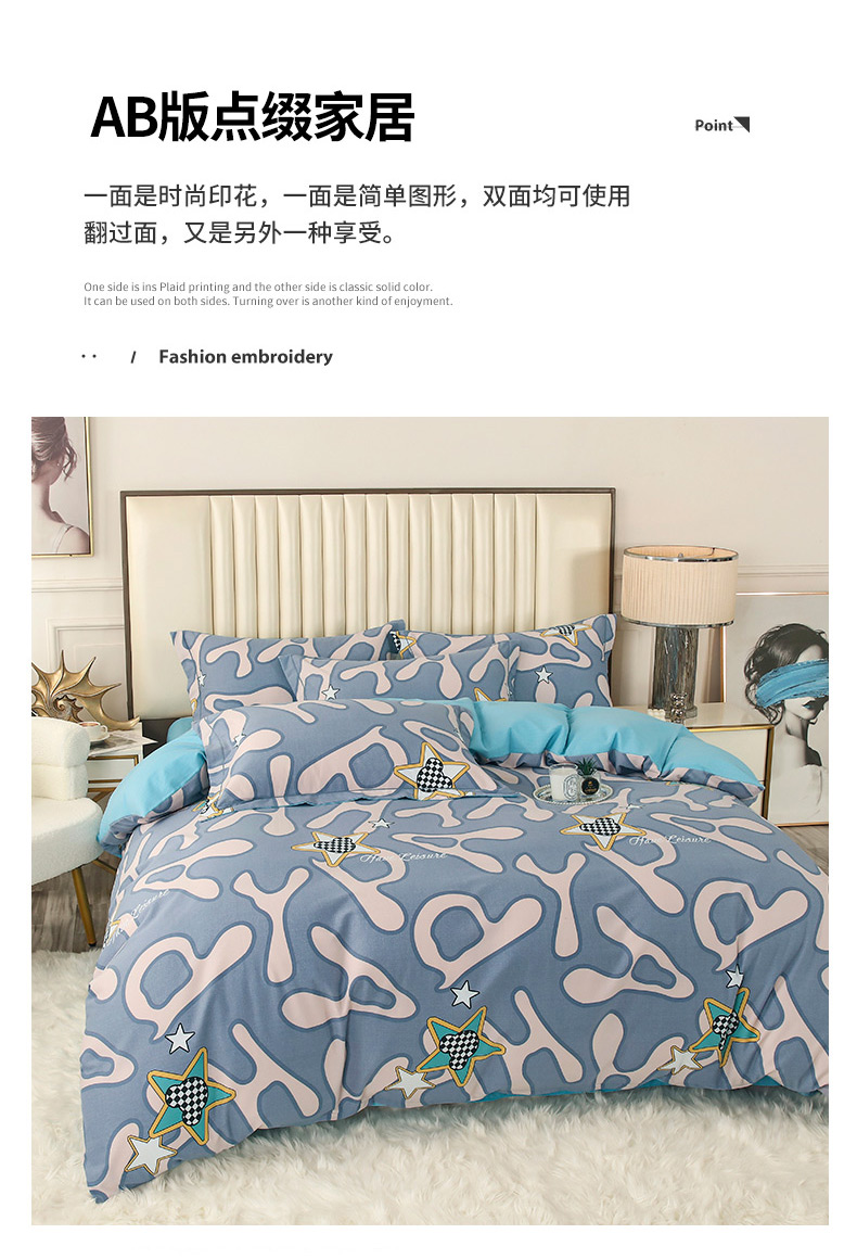商品名称:金纱玉纺家纺 2023新款纯棉加厚AB版四件套 灵动字母-蓝