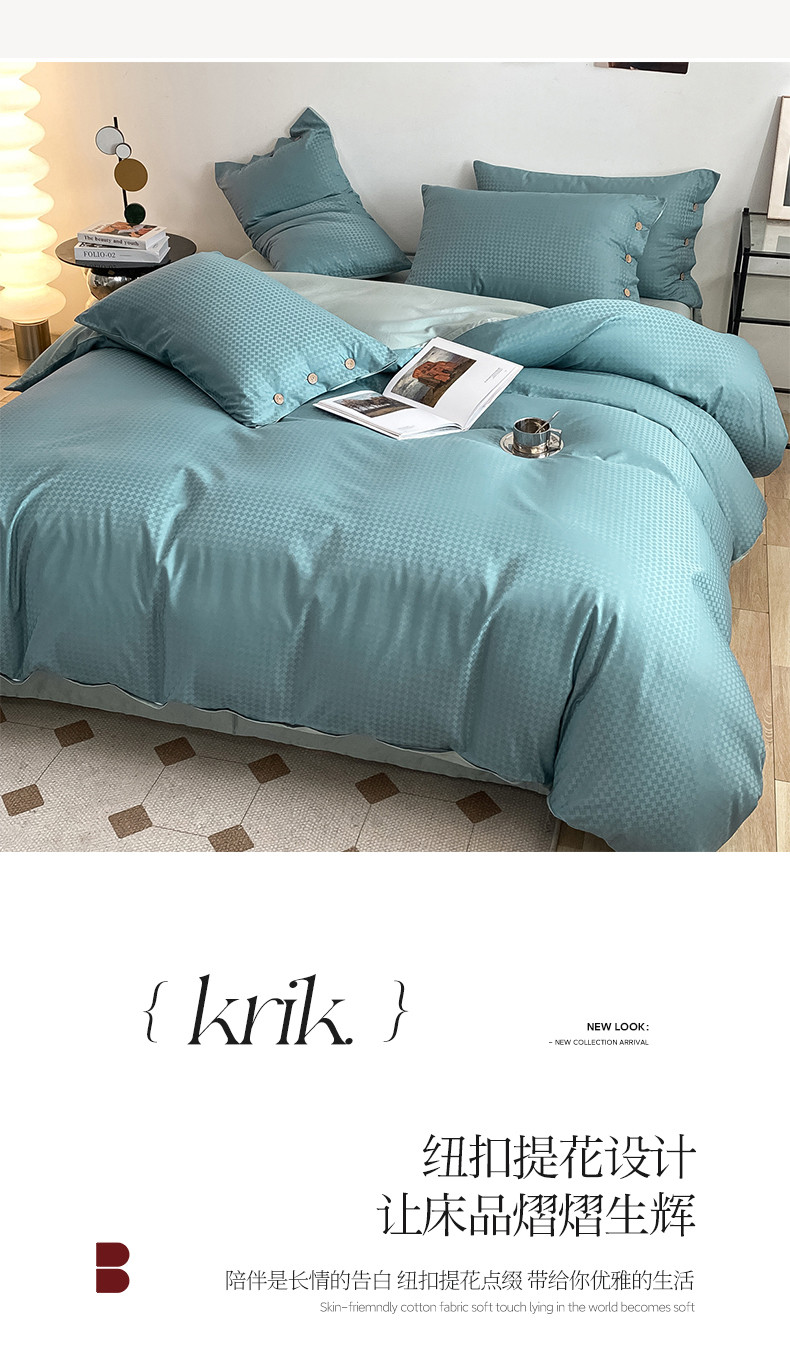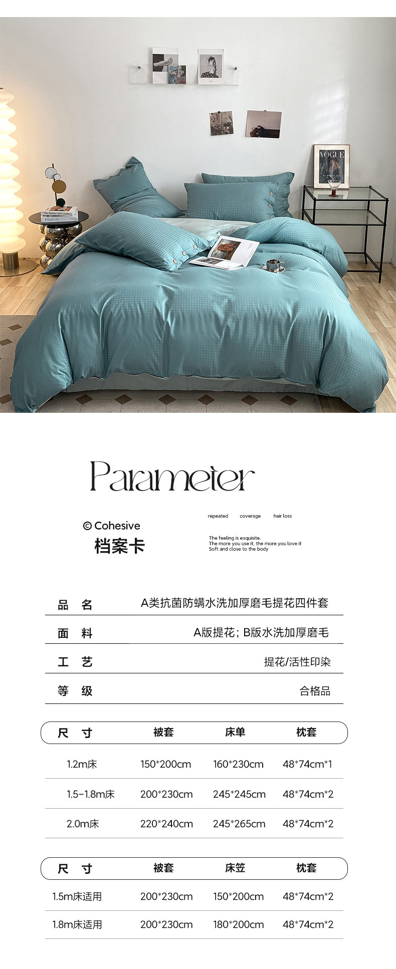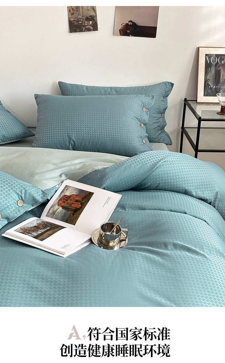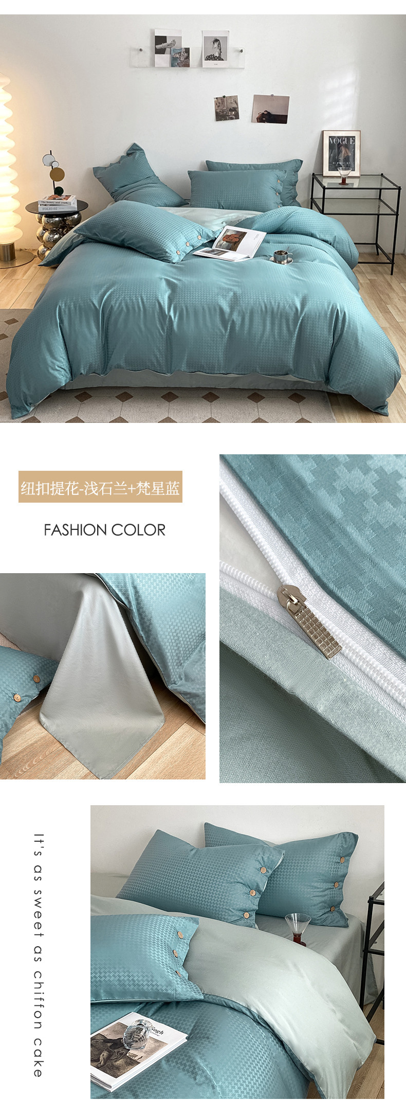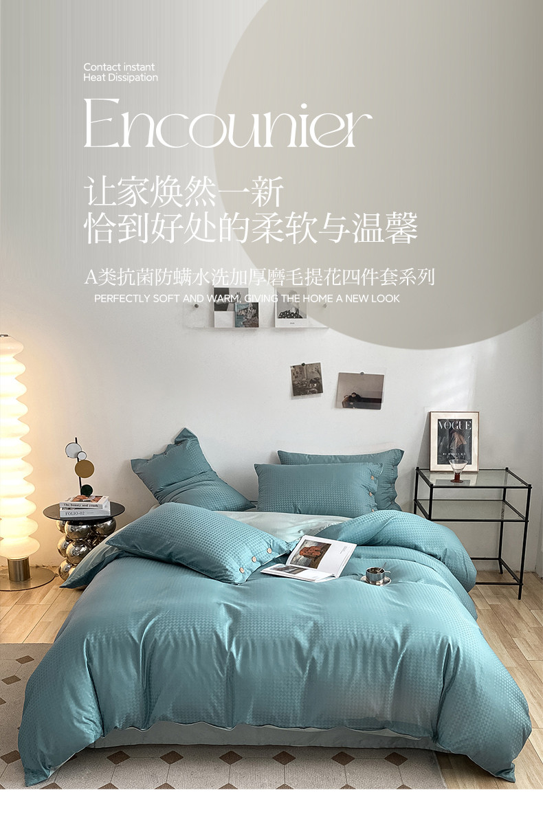 商品名称:古吉梦 2023新款A类抗菌防螨纽扣提花四件套磨毛秋冬款 浅石兰+梵星蓝