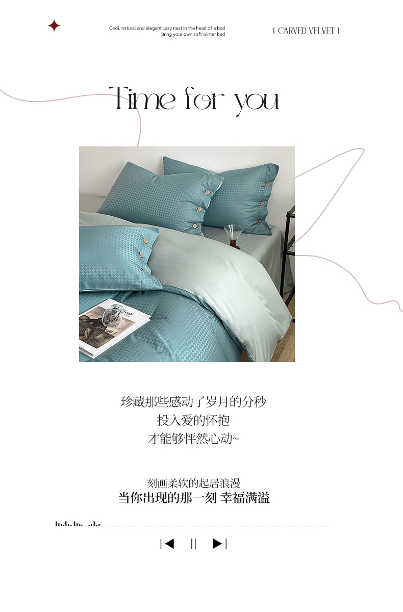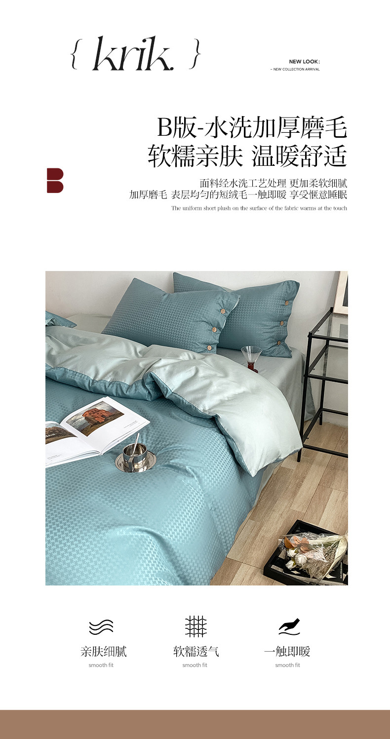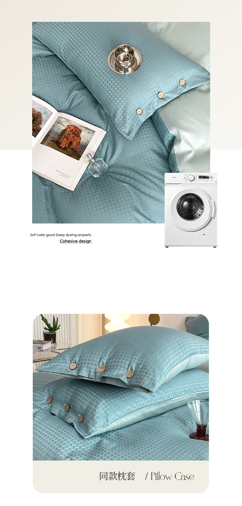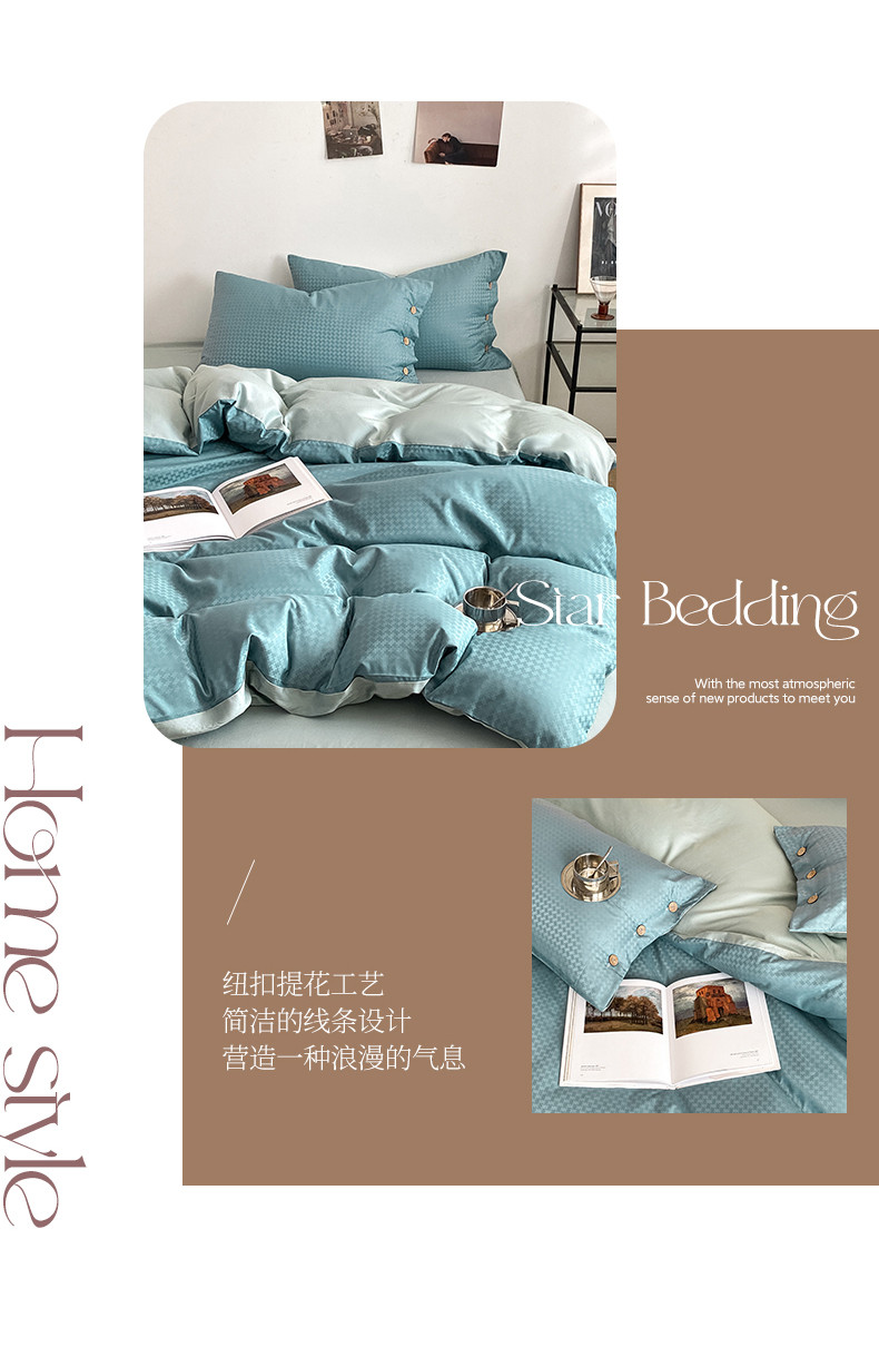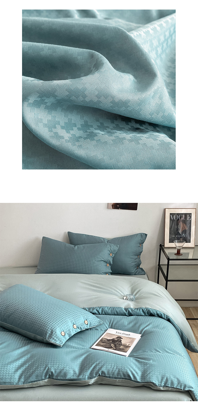 商品名称:古吉梦 2023新款A类抗菌防螨纽扣提花四件套磨毛秋冬款 浅石兰+梵星蓝