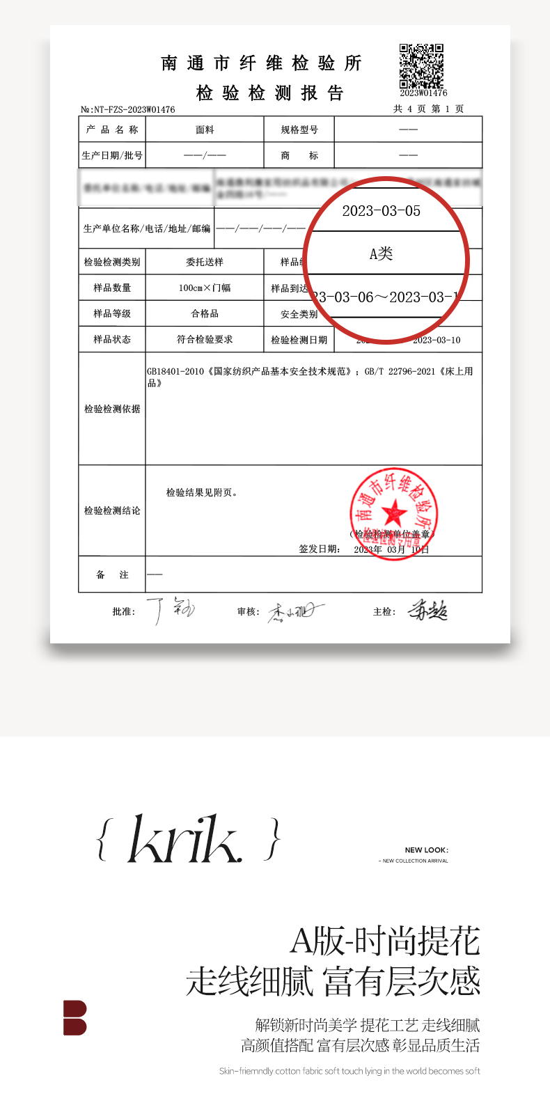 3、通州区市场监督局友情提醒,近期涉及到床上用品不褪色不掉毛不缩水的投诉和以世界知名品牌图案为面料的床品举报较多。请各商家自检自查,对照整改或进行下架处理。
