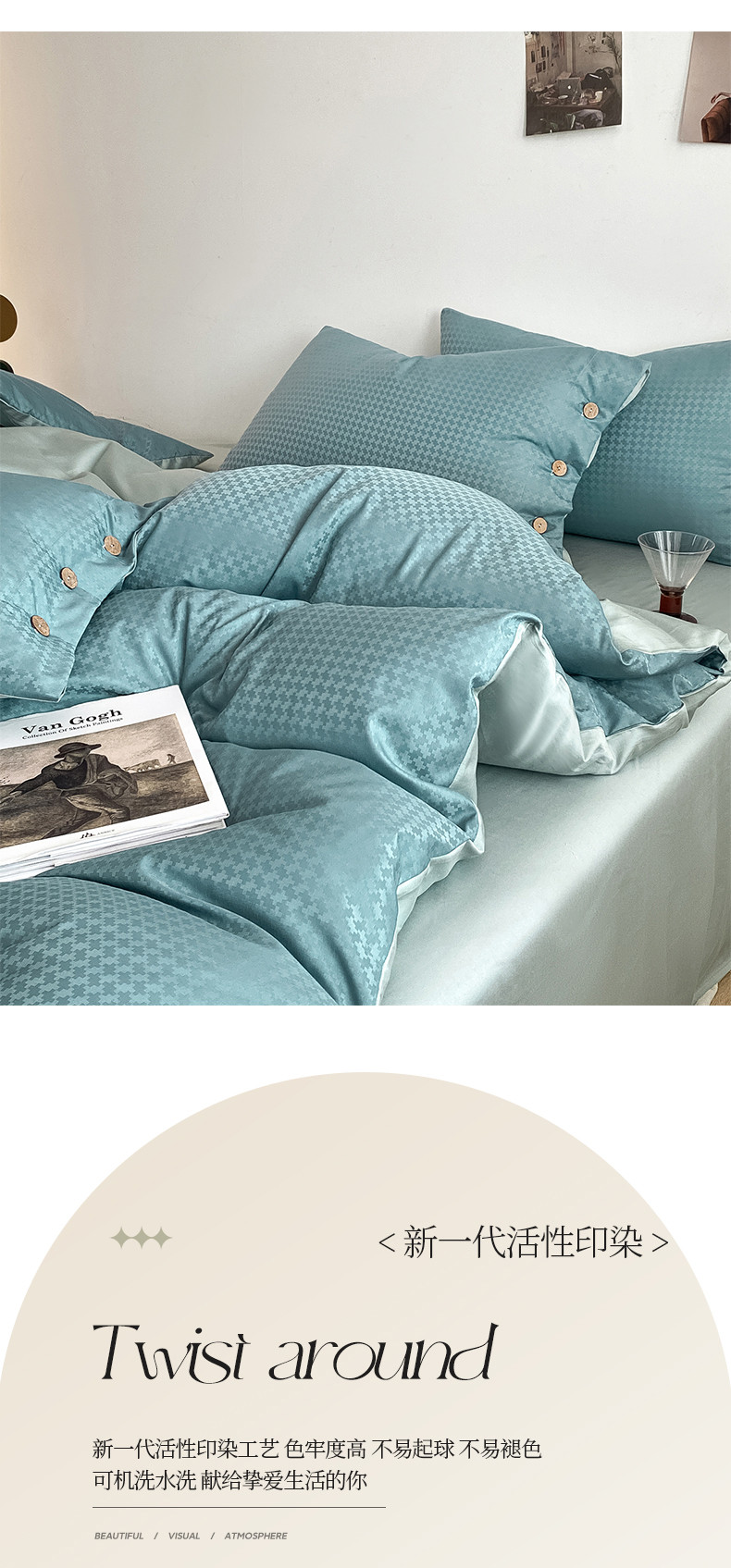 (总)古吉梦 2024新款水洗真丝提花四件套--迪梦 ,宾利蓝+山灰,豆沙+山灰,高级灰+奶茶,海青+山灰,奶昔白+奶茶,山灰+中灰,天空蓝+海青,星空蓝+山灰,中灰+山灰