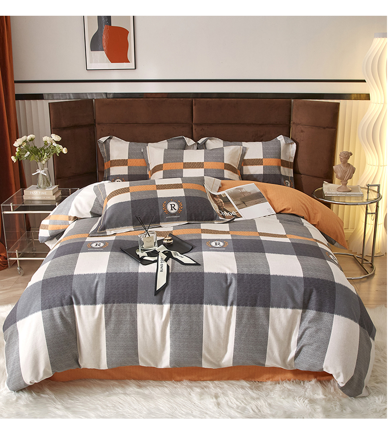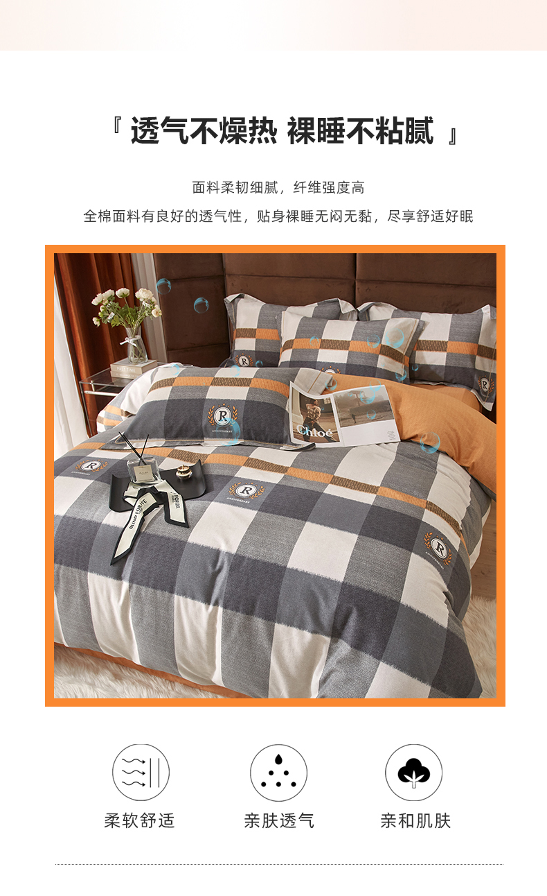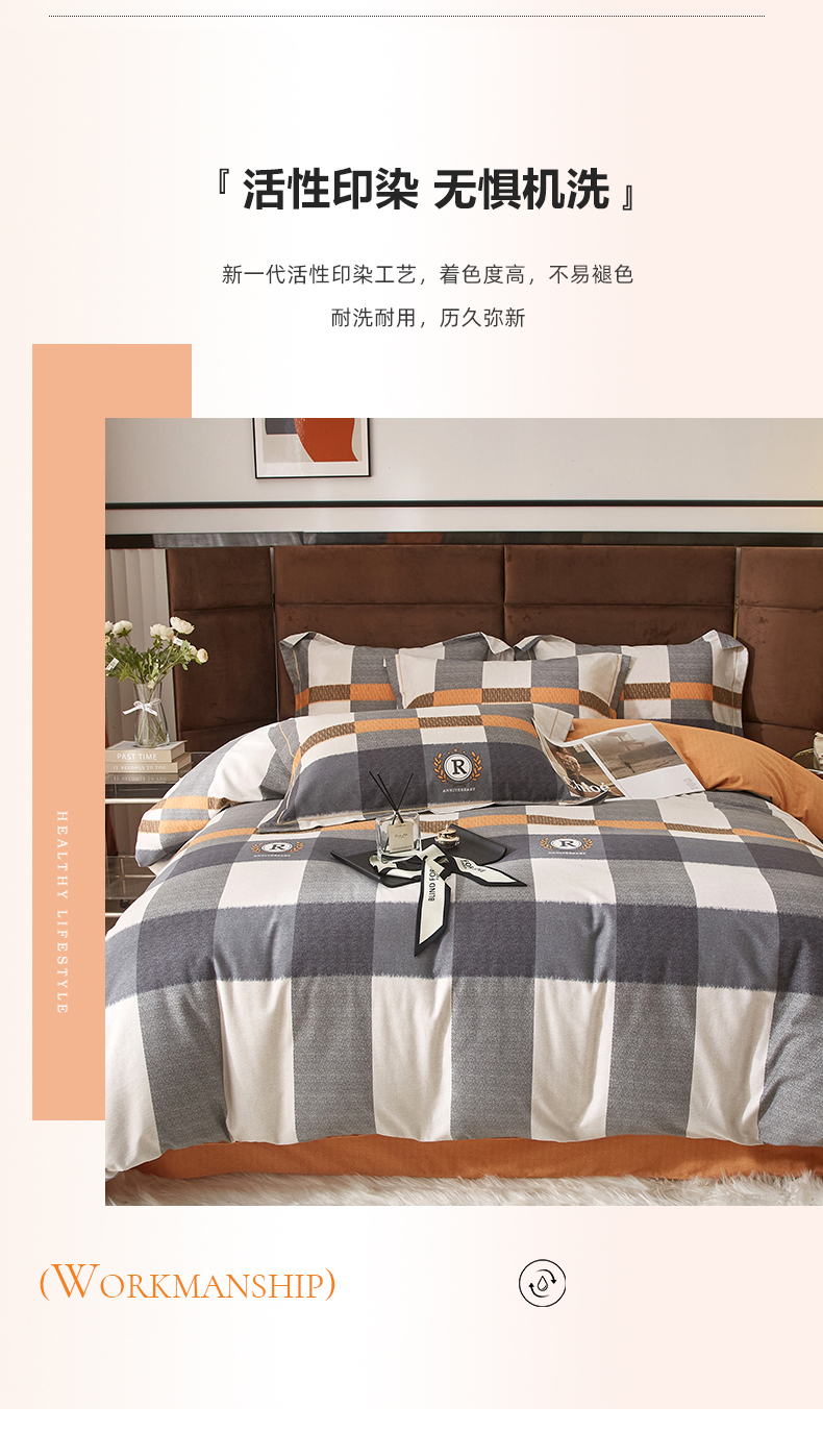 启航家居 2025直播热款全棉精梳磨毛印花四件套-小资格调系列 乐享时光灰