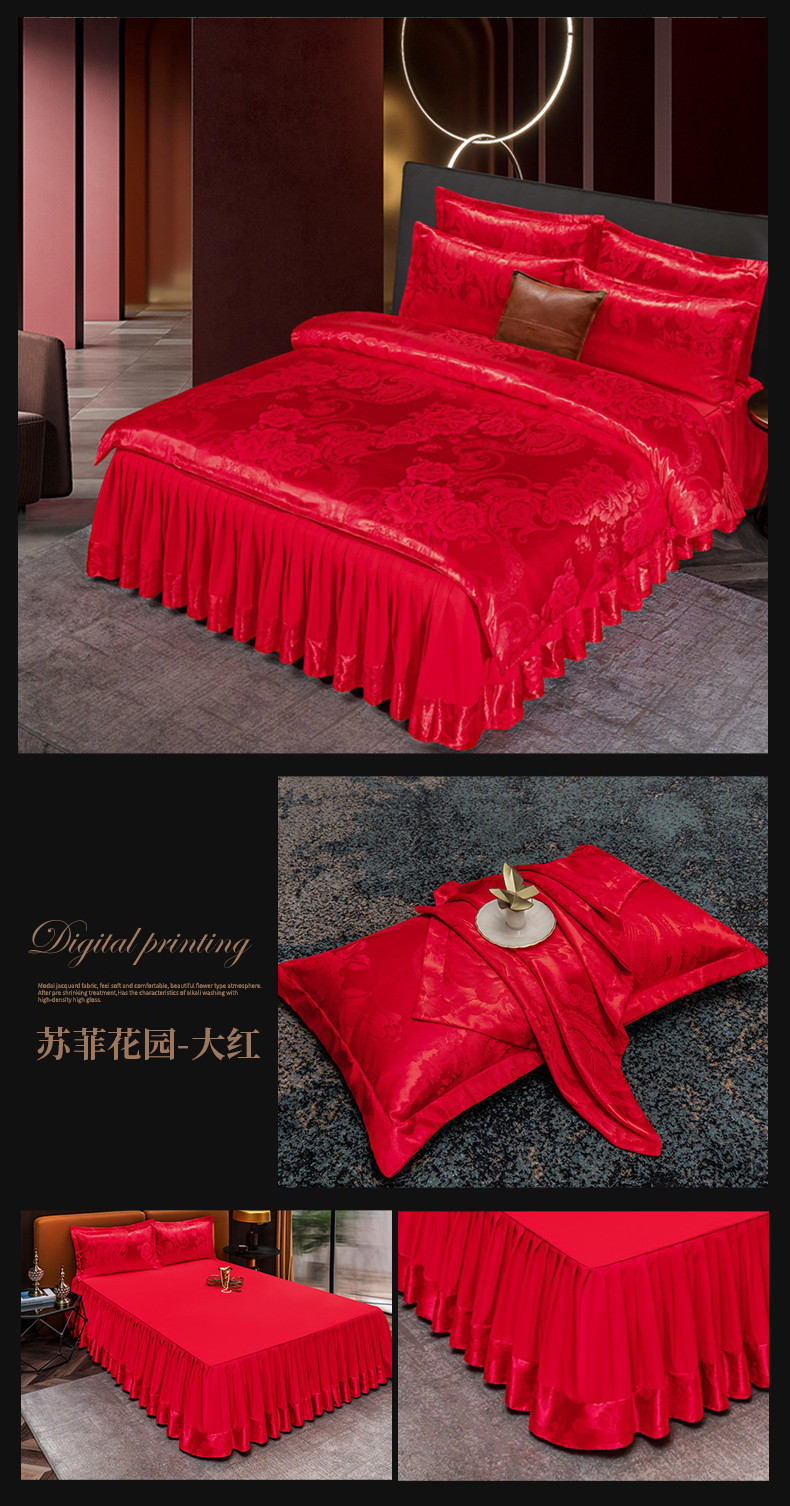 商品名称:莱欧纳 2025新款欧式提花床裙四件套 苏菲花园-大红