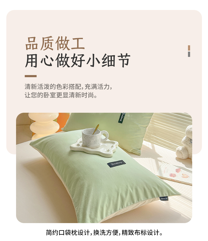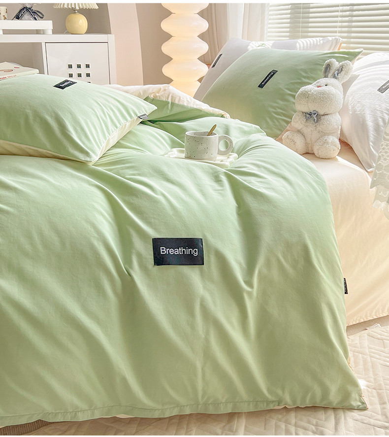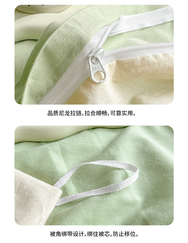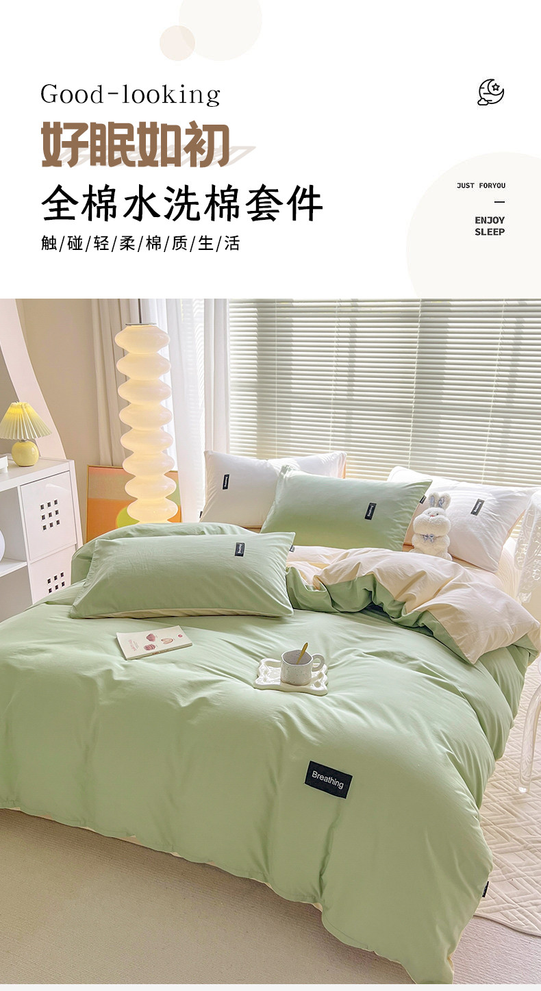当前位置: 91家纺网 > 商品网购 > 床品套件 > 四件套 > 全棉普通四件套 > 绵庭家纺 2023新款全棉水洗棉拼色四件套 果绿+冰心