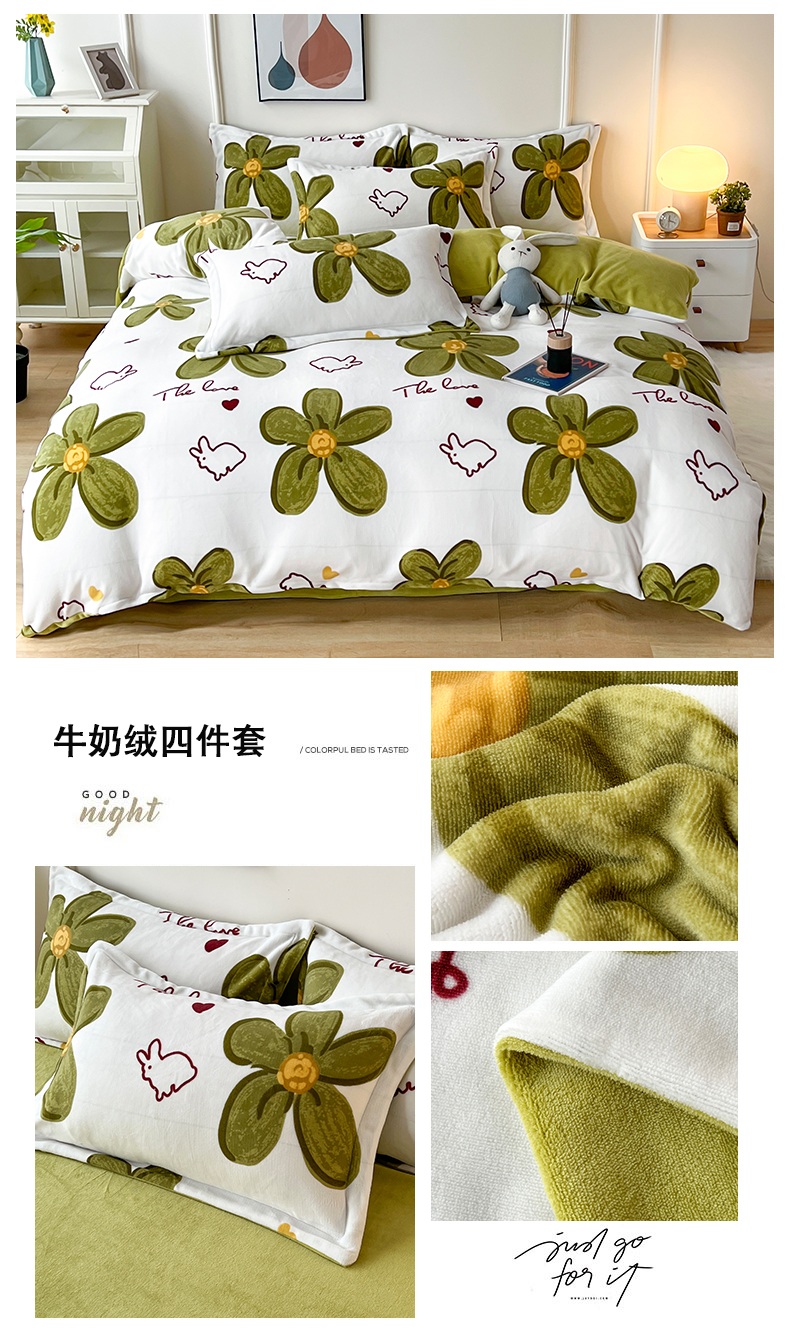 富之航家纺 2023新款牛奶绒印花四件套 花间小兔