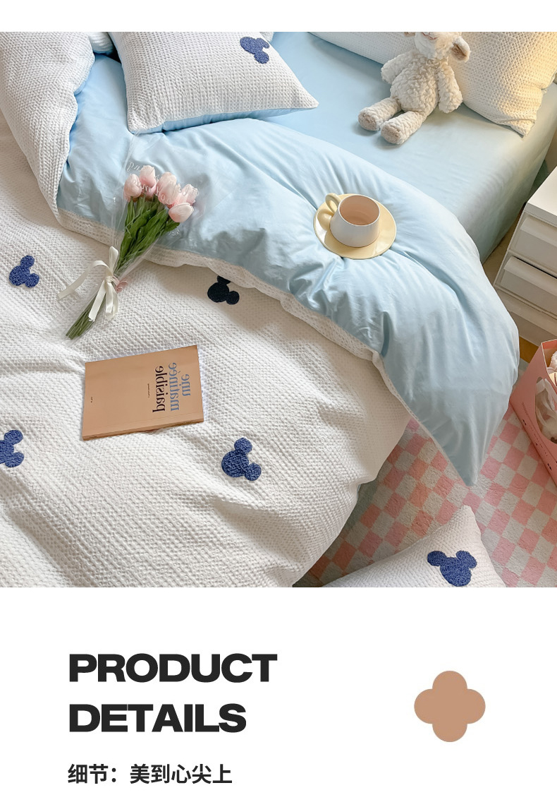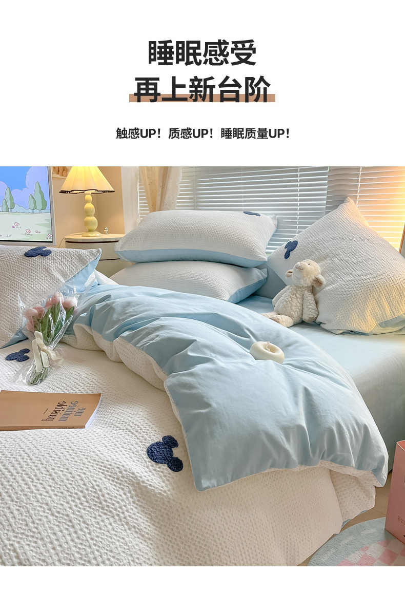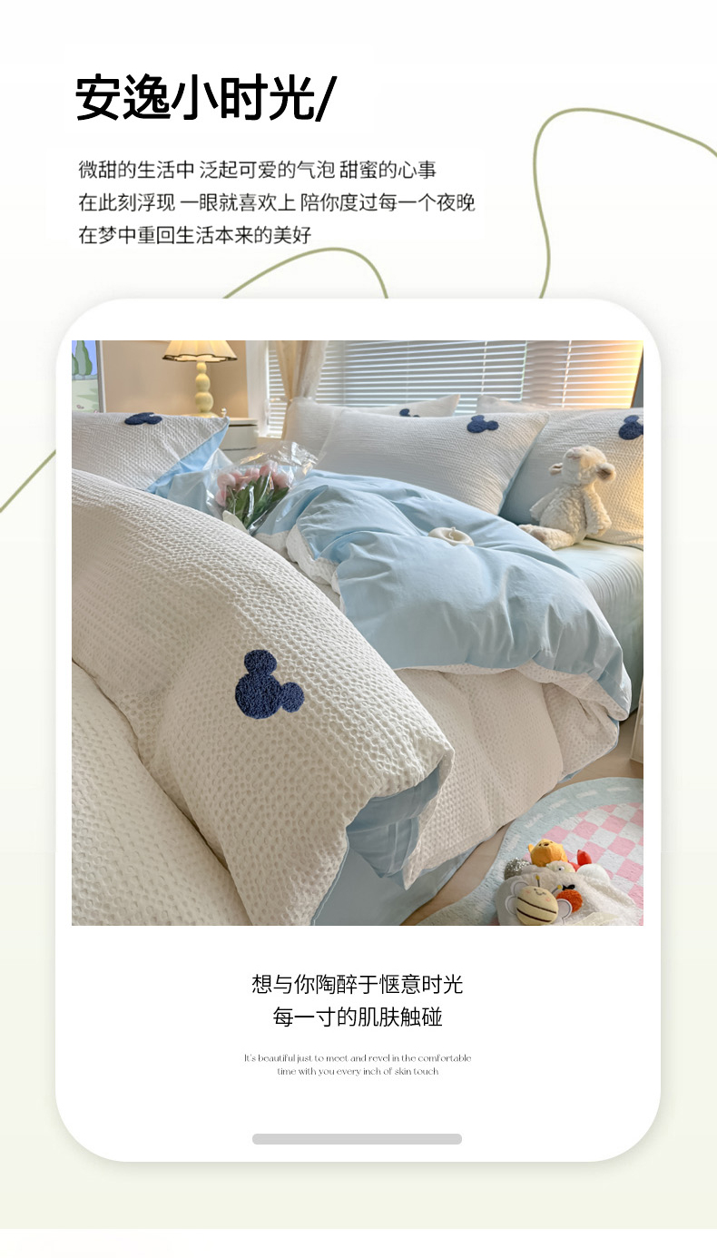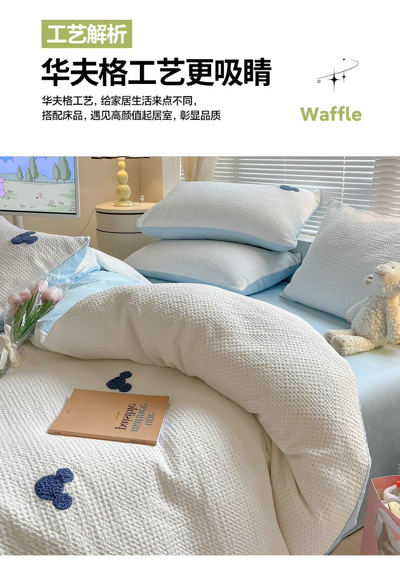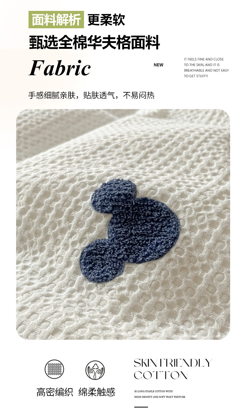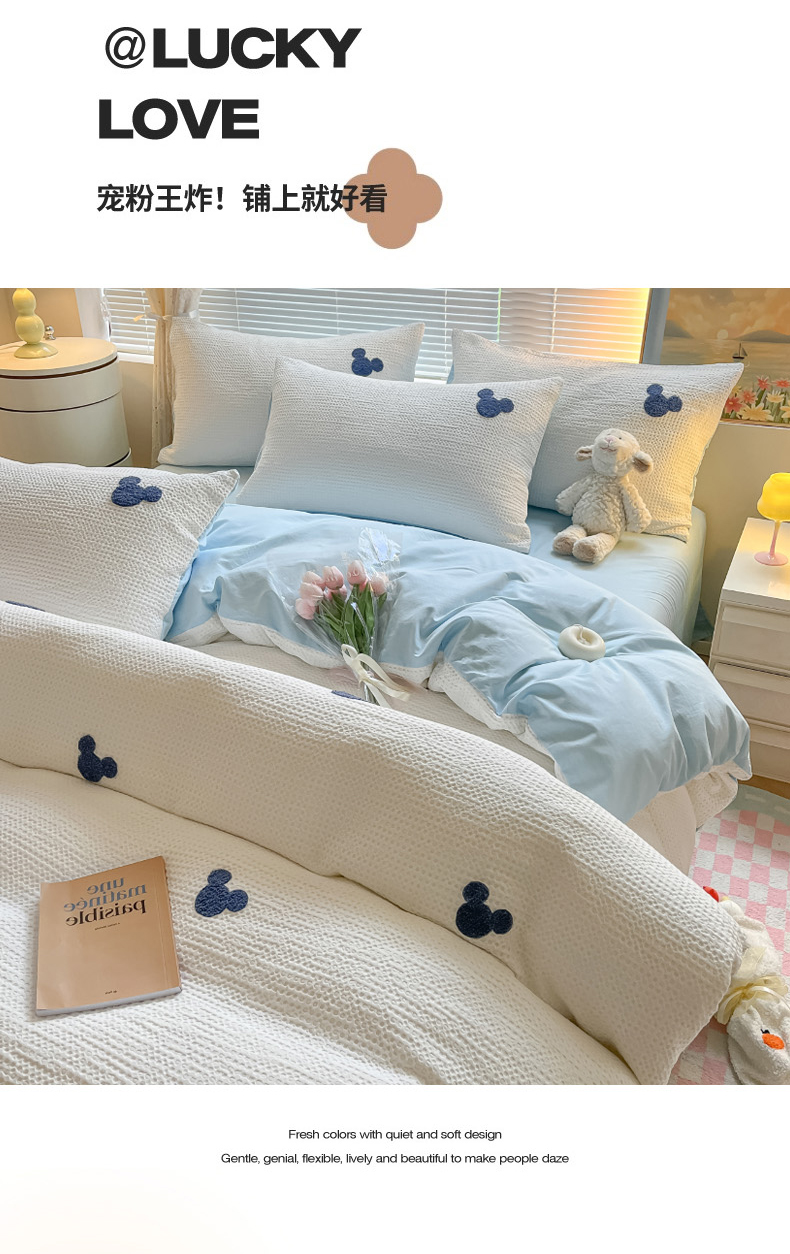 当前位置: 91家纺网 > 商品网购 > 床品套件 > 四件套 > 全棉普通四件套 > 慕尚2025华夫格全棉米奇毛巾绣四件套 米奇 白蓝