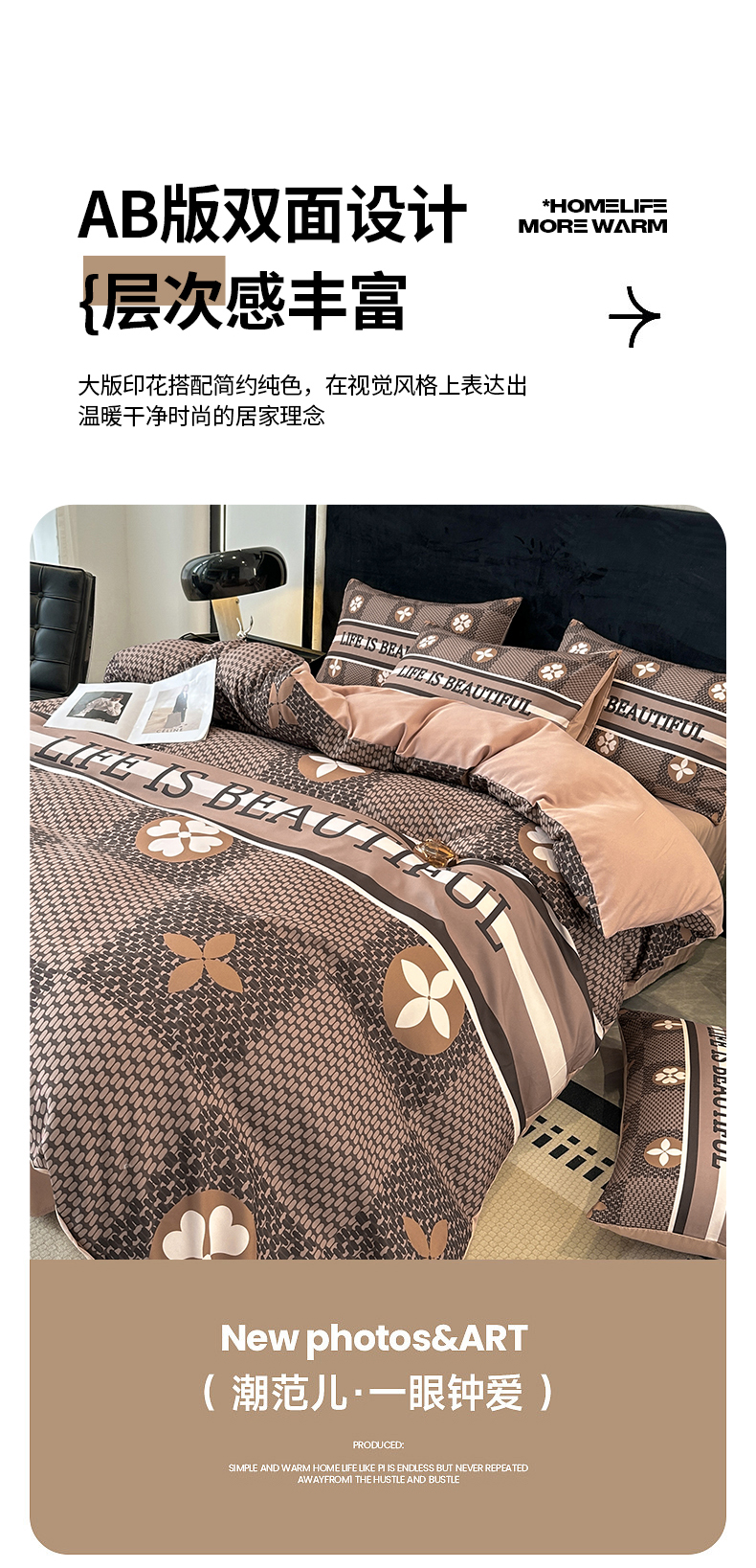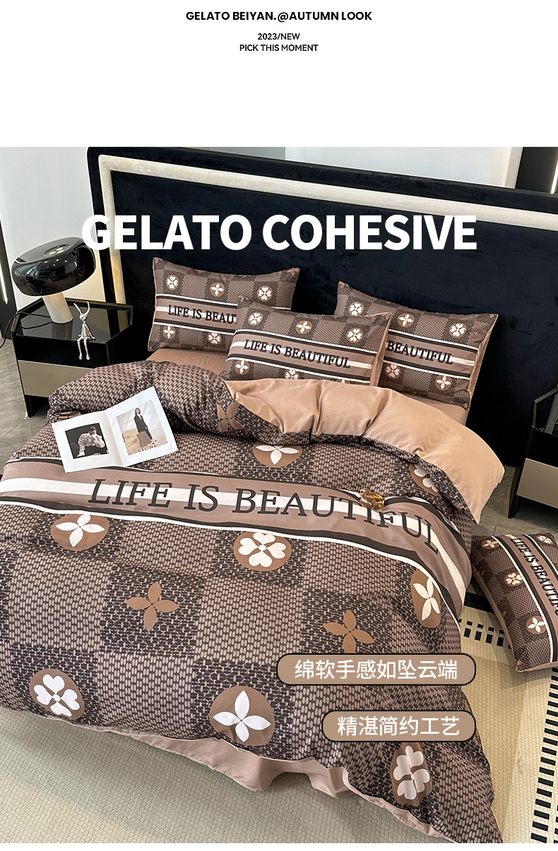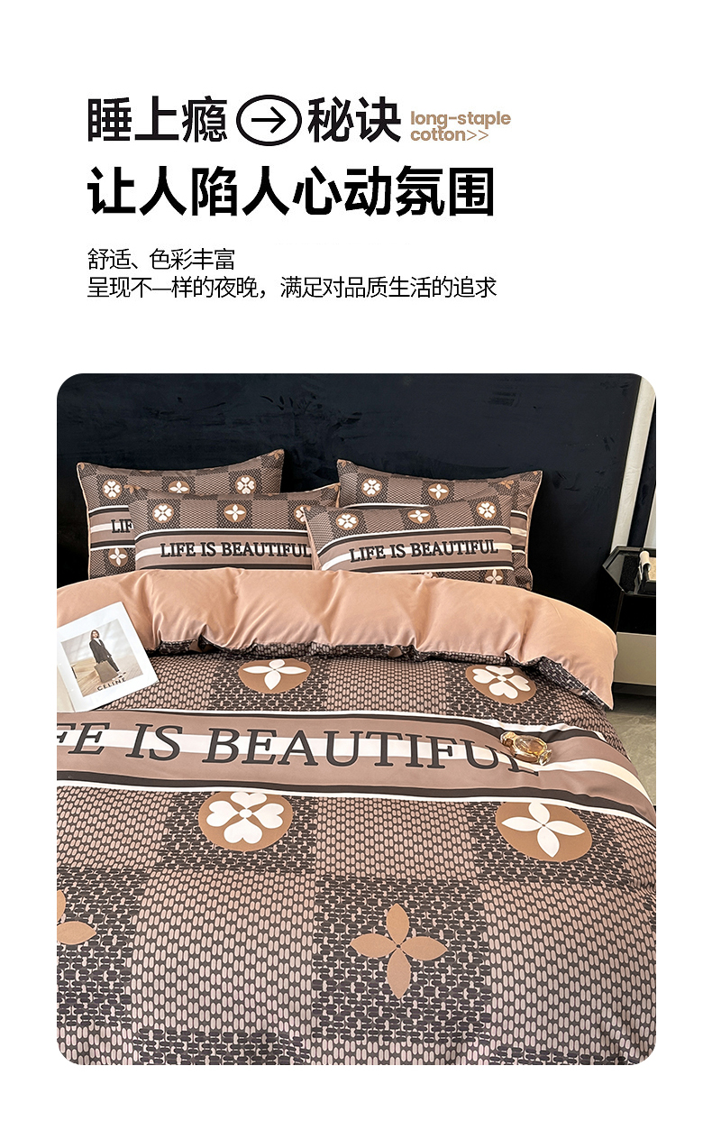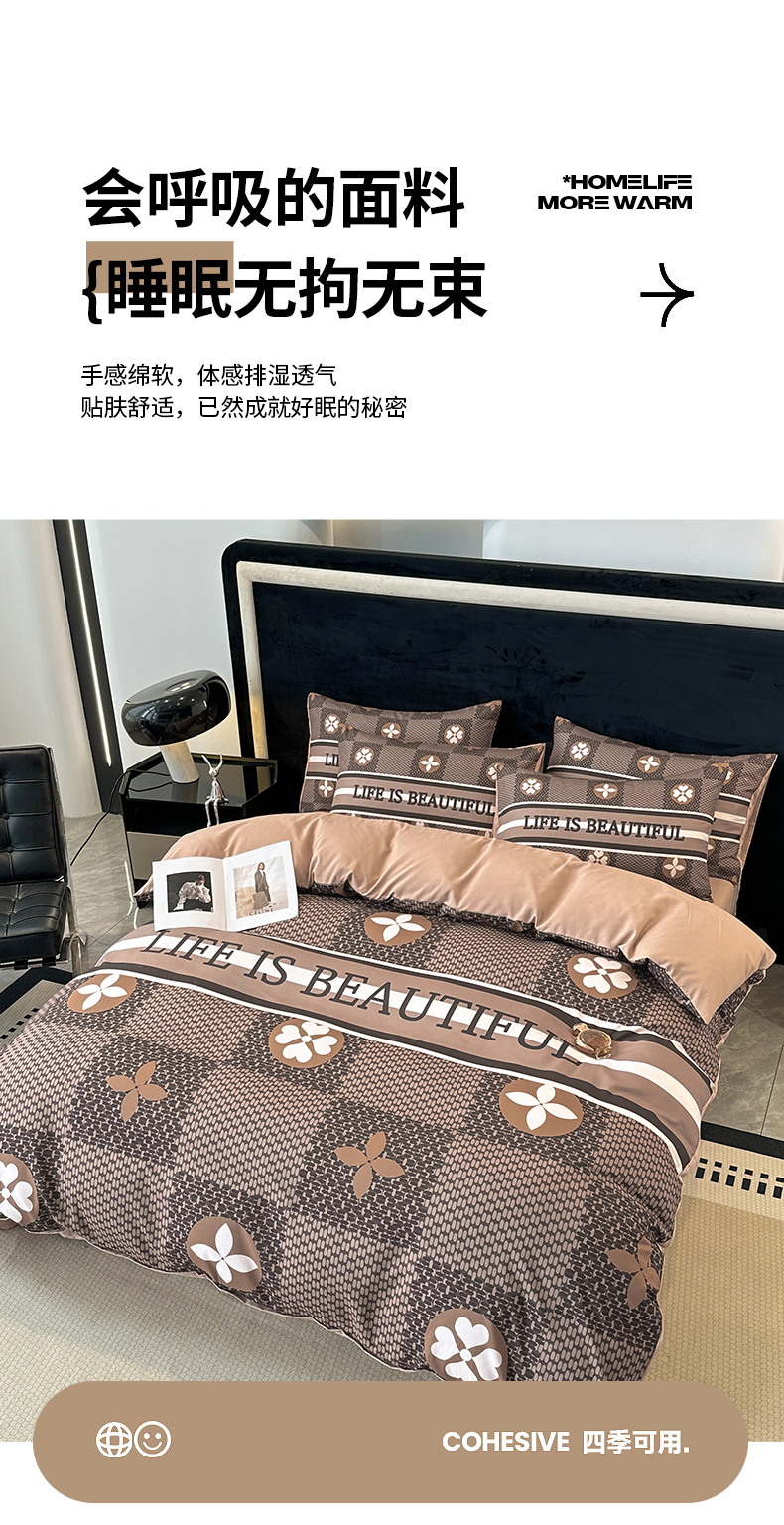当前位置: 91家纺网 > 商品网购 > 床品套件 > 四件套 > 普通磨毛四件套 > 色鬼布艺 2023新款加厚双面磨毛数码大版印花四件套 四叶草-棕