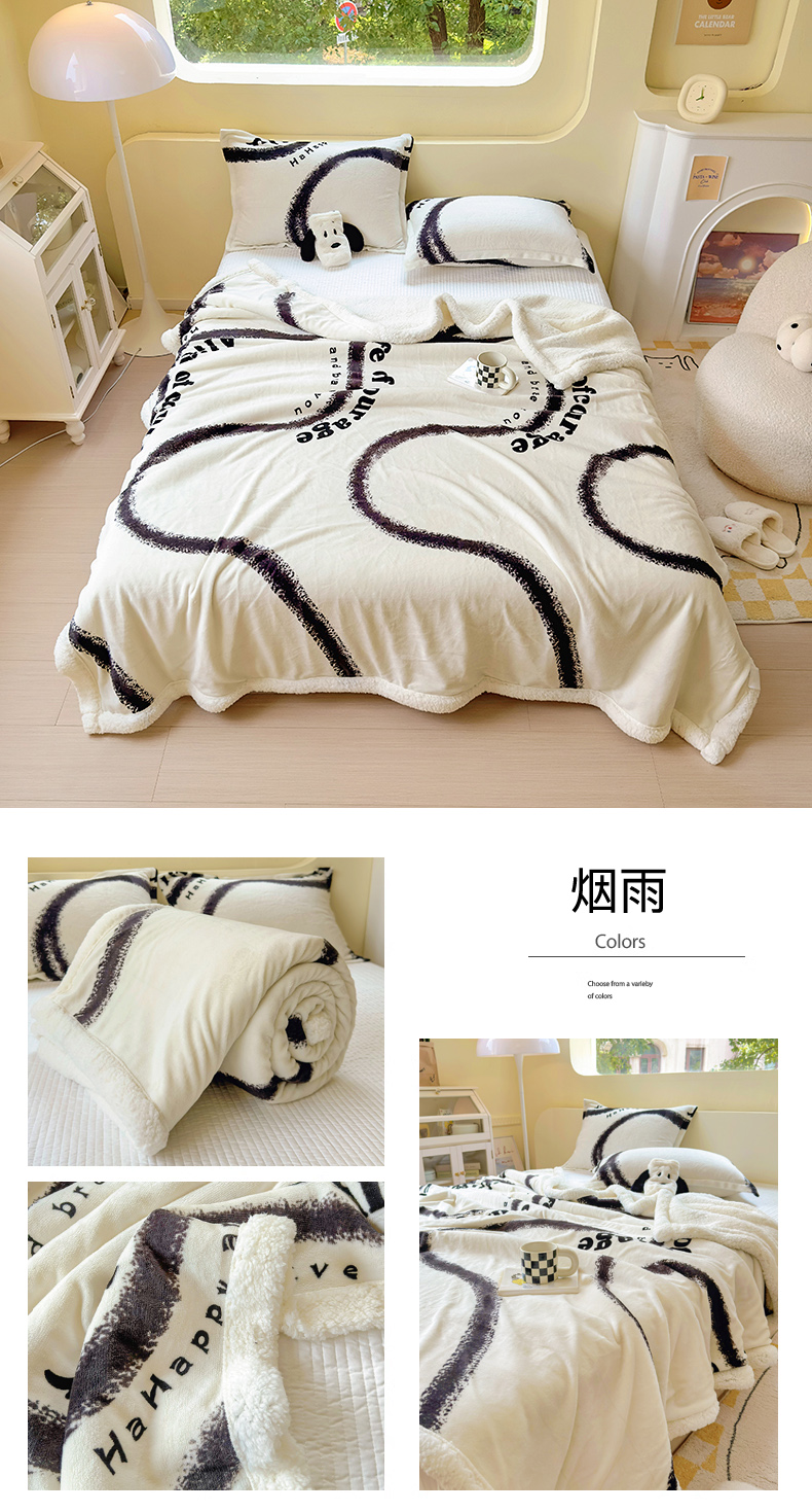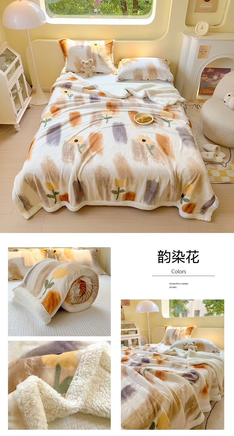 (总)沐慕 2023新款牛奶绒拼羊羔绒毛毯