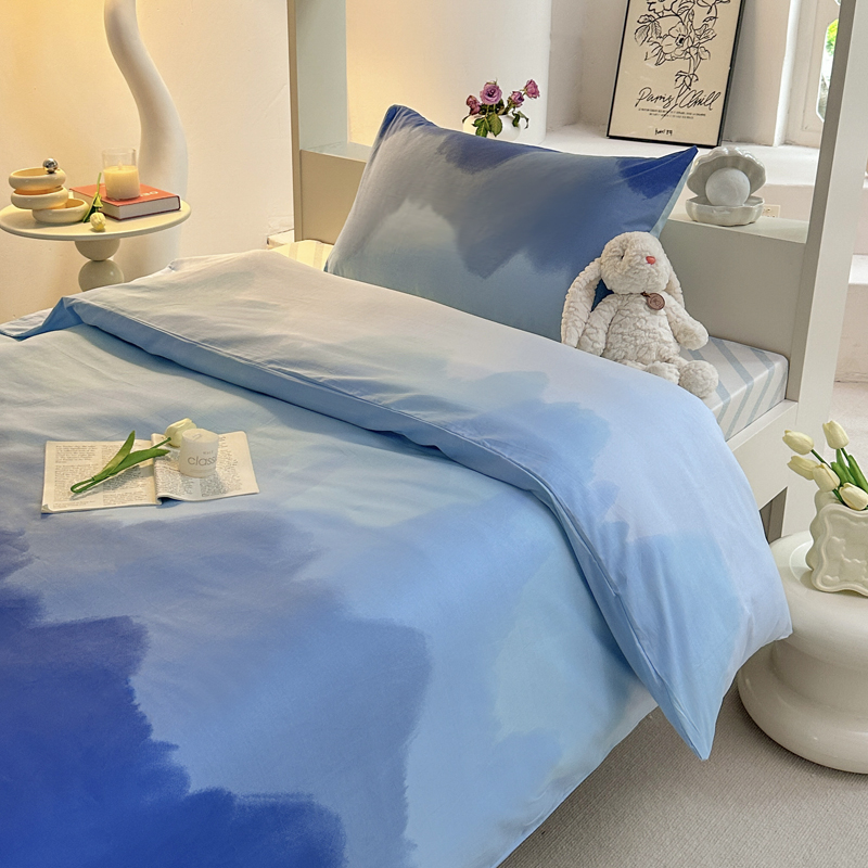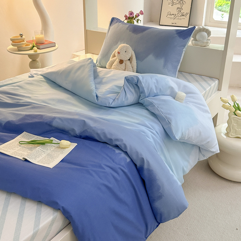 昔可家纺 2023新款少女粉渐变色上下铺全棉四件套 那片蓝海